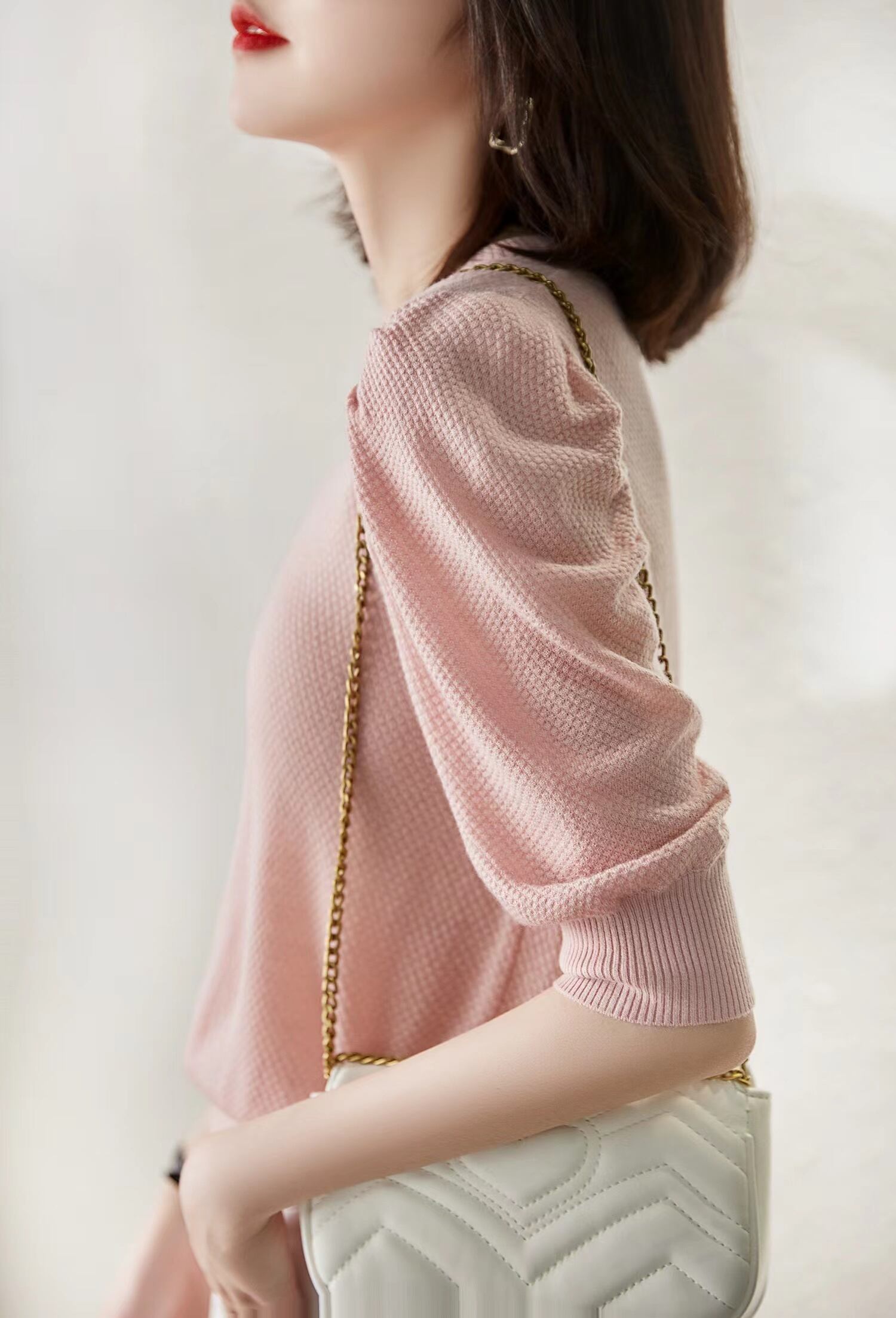 ぽわんとした袖が可愛らしく、すっきりとしたシルエットで華奢見えが叶います◎