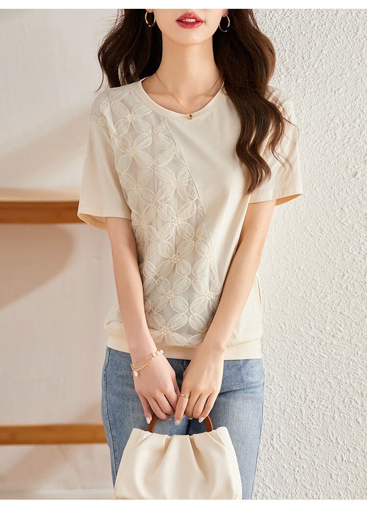 【着用レビュー】トップス レディース Tシャツ カットソー ブラウス M L XL 2XL 3XL 半袖 刺繍 花柄 チュール かわいい 大人可愛い きれいめ 上品 エレガント 清楚 フェミニン おしゃれ お洒落 綺麗 お嬢様 こなれ感 キュート ガーリー ロマンチック レトロ 抜け感 送料無料 無地 OL 通勤 学生 通学 デート お出かけ 女子会 休日 アプリコット 春 夏 秋 10代 20代 30代 韓国系 着回し 普段使い 重ね着 ママ 旅行 きちんと感 ファッション コーデ プチプラ インスタ