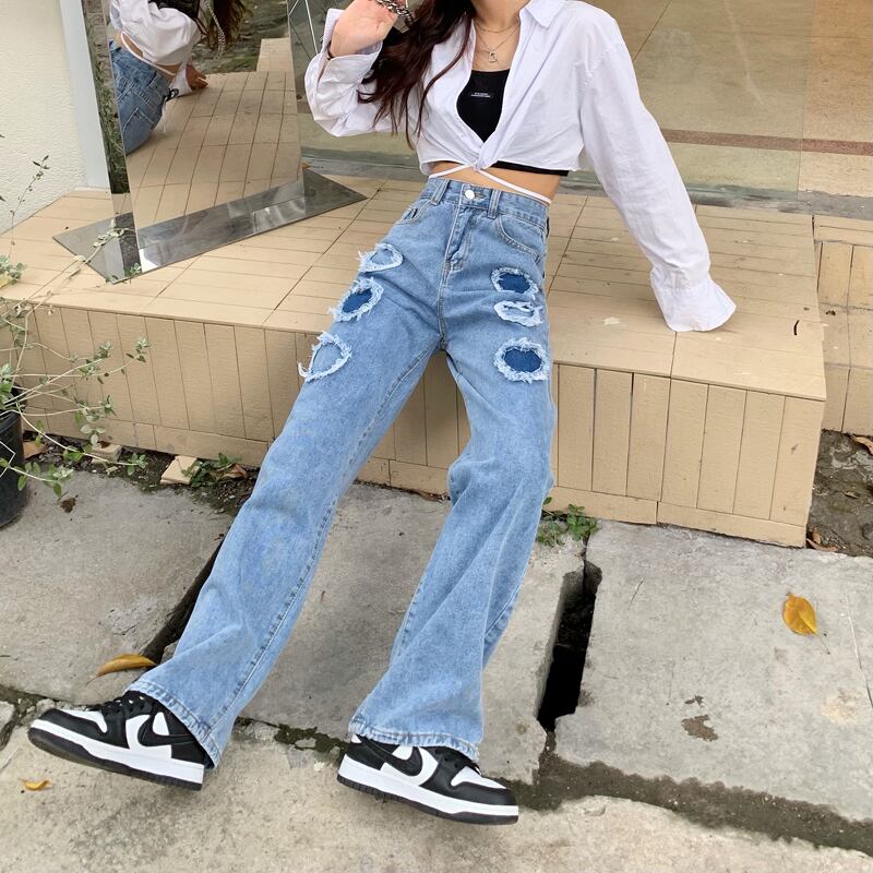 パンツ レディース デニム ワイドパンツ S M L XL 2XL 3XL 4XL 大きいサイズ ロング丈 スリム ストレート Aライン ポケット ハイウエスト パッチワーク デニム かわいい 大人可愛い きれいめ シンプル カジュアル おしゃれ かっこいい クール ストリート おとな ナチュラル こなれ感 ガーリー 抜け感 ハート 通勤 学生 通学 デート お出かけ 女子会 散歩 カフェ巡り 送料無料 ブルー 春 夏 秋 10代 20代 30代 ママ 韓国系 着回し 普段使い 脚長 ファッション モテ