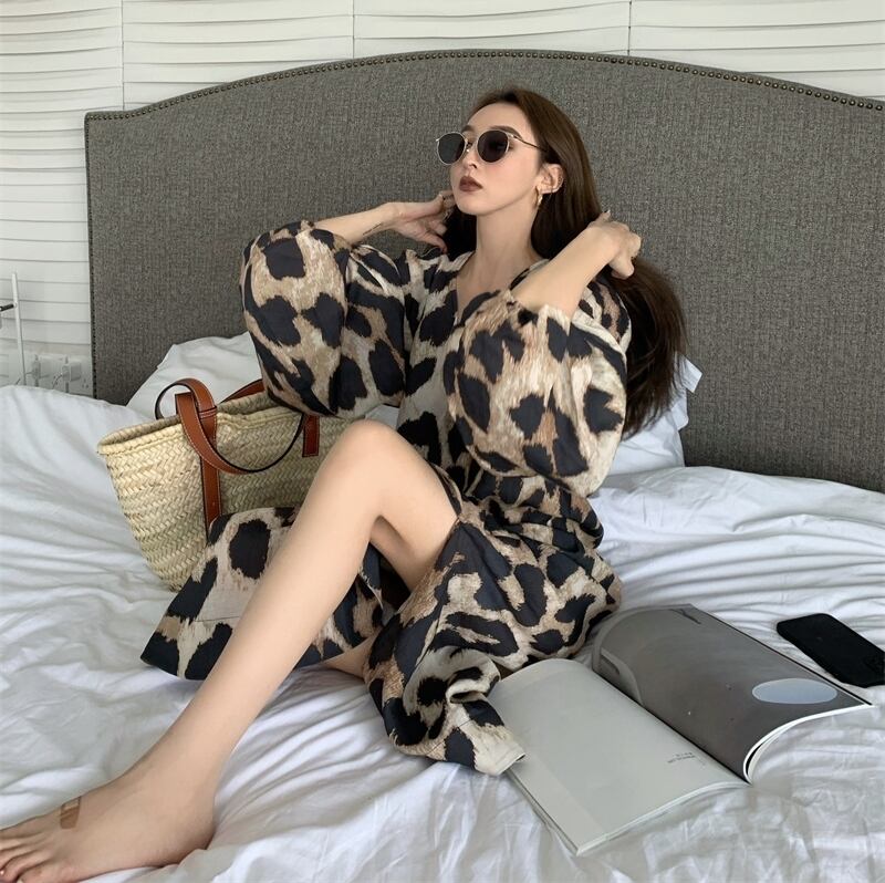 ワンピース レディース ロングワンピース ロング丈 袖あり マキシワンピース マキシ丈 ヒョウ柄 アニマル柄 スリット おしゃれ お洒落 オシャレ かっこいい 大人女子 セクシー エレガント 送料無料 存在感 S M L XL 柄 誕生日 バースデー 記念日 ディナー ランチ お出かけ ショッピング 買い物 デート 女子会 休日 パーティー イベント リゾート 旅行 ファッション コーデ スタイル モテ 美脚 トレンド 流行 インスタ インスタ映え 体型カバー バレンタイン クリスマス ワイン 大人コーデ