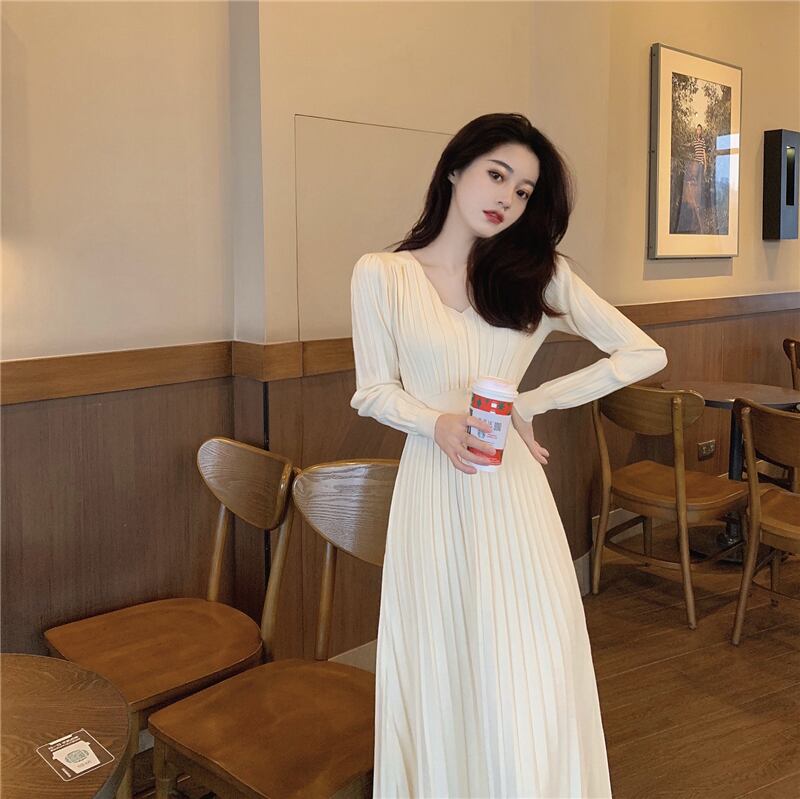 ワンピース レディース 2色 ニットワンピース ミモレ丈 長袖 Vネック スリム 細身 Xライン ウエストマーク ハイウエスト ニット かわいい 大人可愛い きれいめ シンプル カジュアル 上品 エレガント 清楚 おしゃれ 綺麗 お嬢様 セクシー おとな ナチュラル キュート ガーリー 通勤 学生 通学 デート お出かけ 女子会 散歩 カフェ巡り 送料無料 S M L ホワイト ブラック 春 秋 10代 20代 30代 ママ 韓国系 着回し 普段使い 体型カバー 脚長 ファッション コーデ モテ トレンド