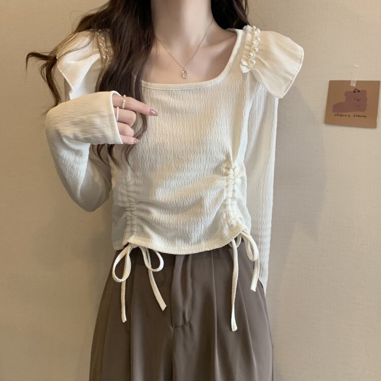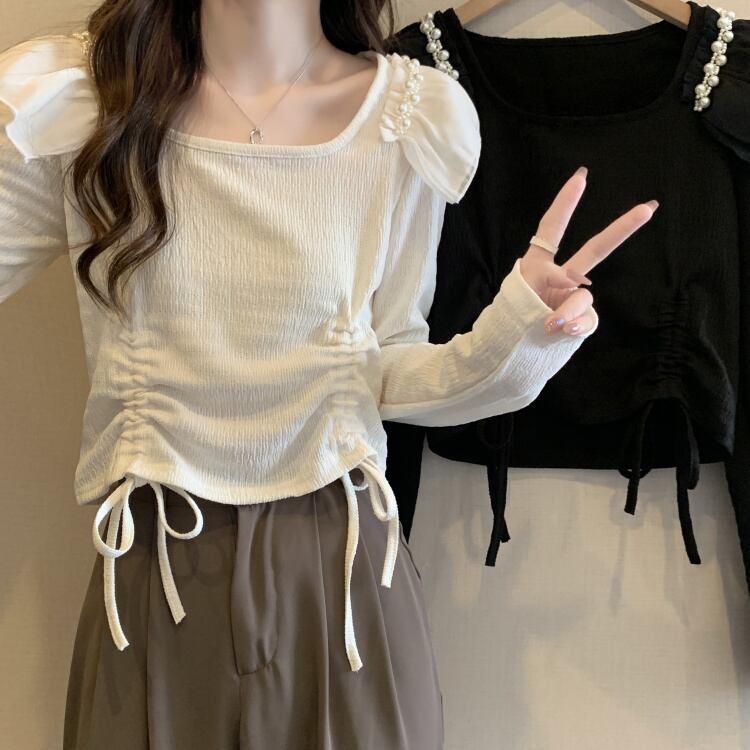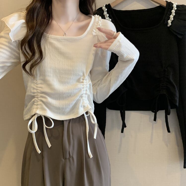 【着用レビュー】トップス レディース カットソー シャツ ショート ショート丈 長袖 スクエアネック スリム タイト 細身 フリル かわいい 大人可愛い きれいめ 上品 エレガント フェミニン おしゃれ お洒落 おとな こなれ感 ラブリー キュート 個性的 ロマンチック 抜け感 華やか 送料無料 存在感 無地 学生 通学 デート お出かけ 女子会 休日 M L XL ベージュ ブラック 黒 春 夏 秋 10代 20代 30代 40代 韓国 韓国系 着回し 普段使い ファッション コーデ モテ インスタ