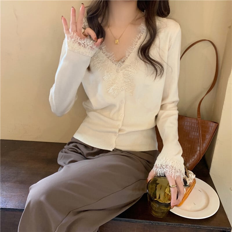 トップス レディース カットソー カーディガン 上着 送料無料 長袖 Vネック 襟なし スリム 細身 レース ニット きれいめ シンプル 大人 上品 おしゃれ お洒落 レトロ 大人可愛い 大人女子 エレガント モダン フォーマル とろみ感 無地 秋 冬 20代 30代 40代 OL デート お出かけ 女子会 お泊まり 休日 旅行 着回し ファッション 楽ちん 暖かい L XL 2XL 3XL 4XL 大きいサイズ 大きい 大きめ ビッグサイズ ホワイト ブラック