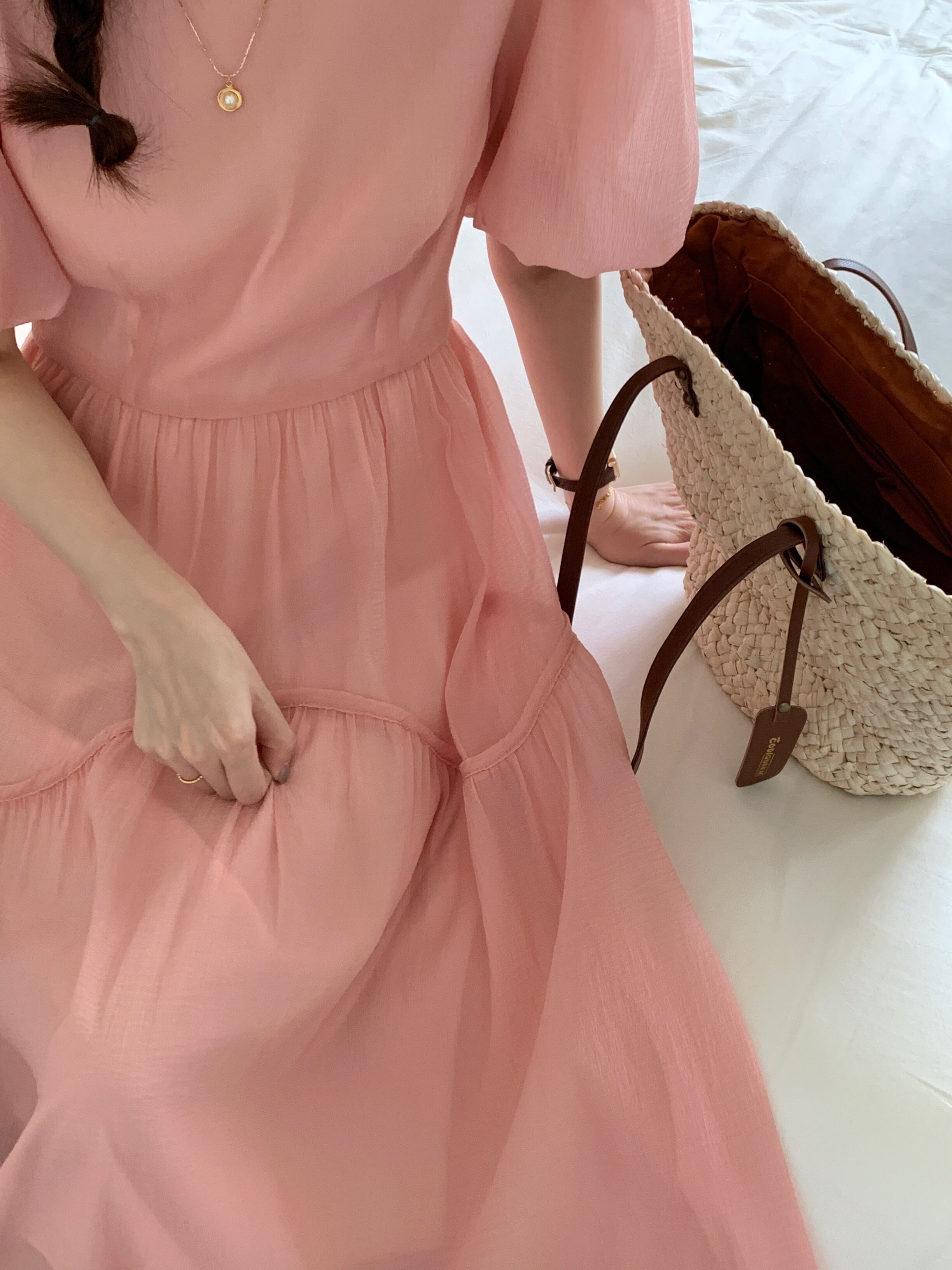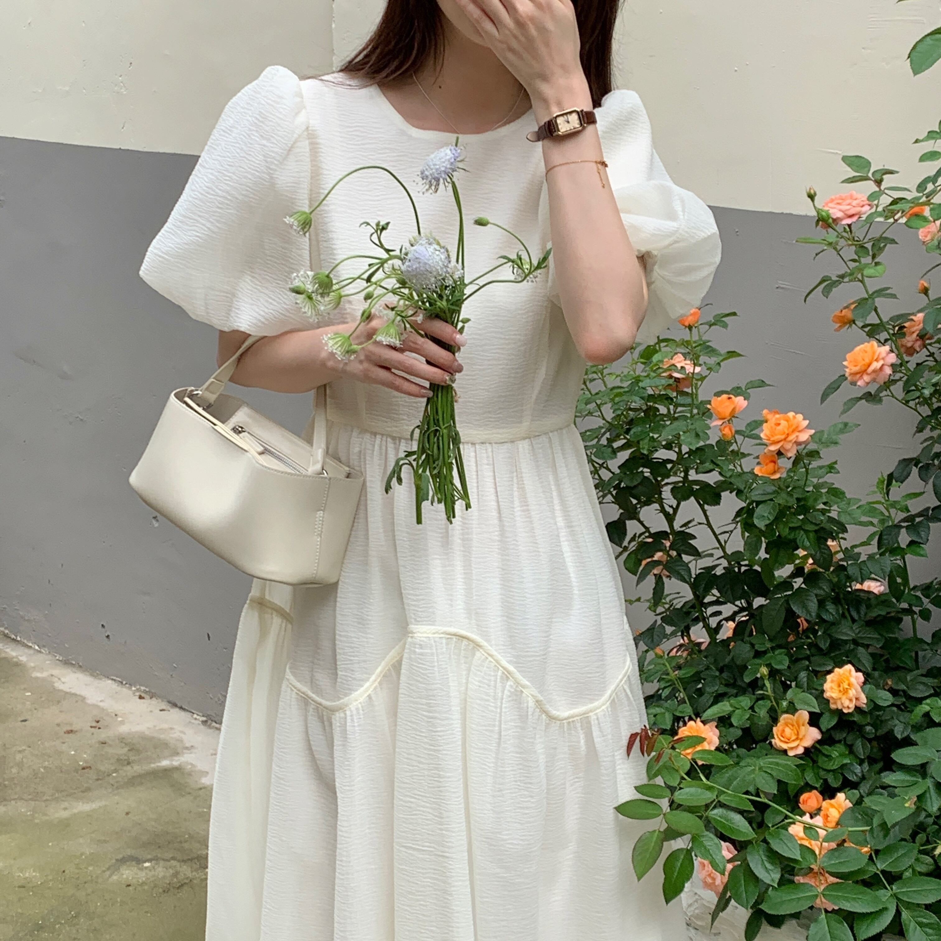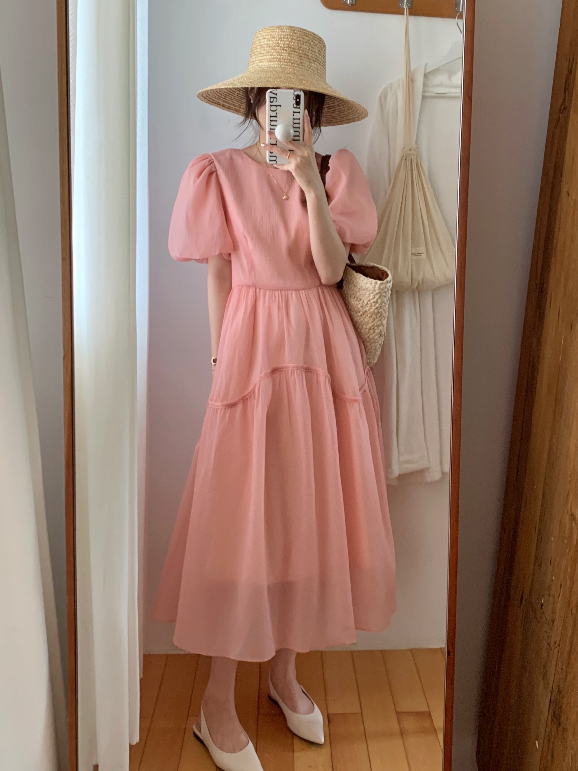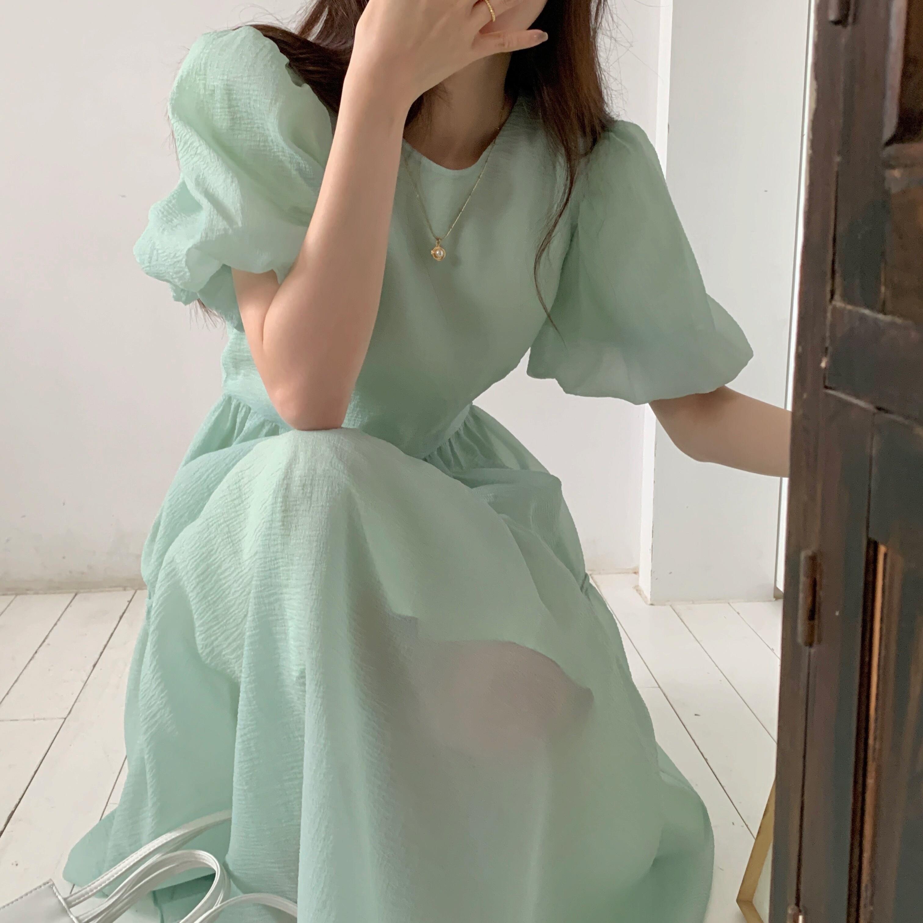 ワンピース レディース ロングワンピース ロング ロング丈 半袖 ボリューム袖 パフスリーブ チュール シースルー シアー ラウンドネック Aライン フレア ウエストリボン ハイウエスト かわいい 大人可愛い カジュアル エレガント シック おしゃれ 綺麗 おとな ナチュラル こなれ感 ラフ ガーリー リラックス 抜け感 通勤 通学 学生 OL ママ デート お出かけ 女子会 休日 リゾート 旅行 10代 20代 30代 フリーサイズ 春 夏 秋 韓国 着回し 普段使い ホワイト ピンク ミントグリーン