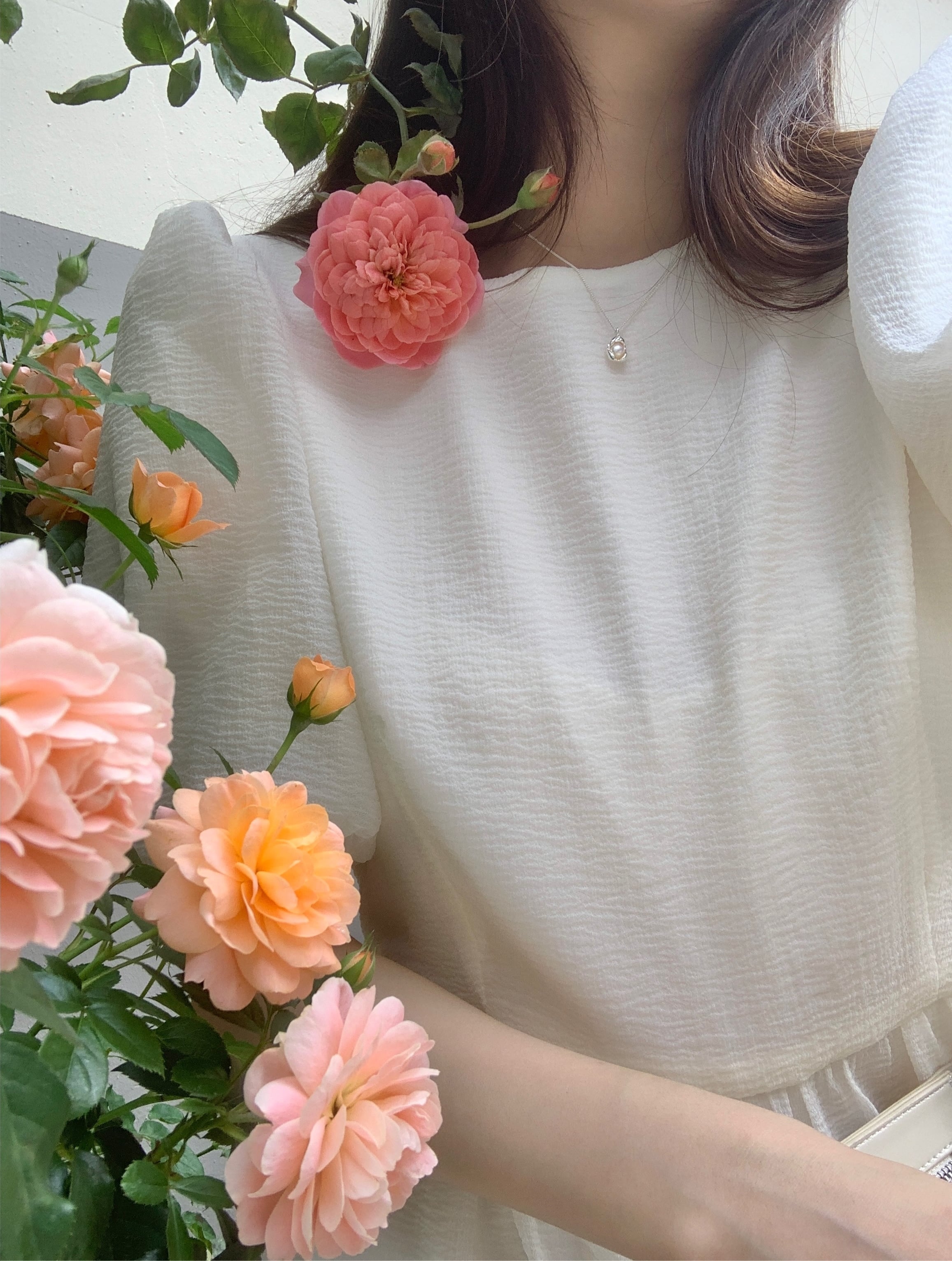 ボリューミーなパフスリーブがとってもフェミニンな雰囲気♡