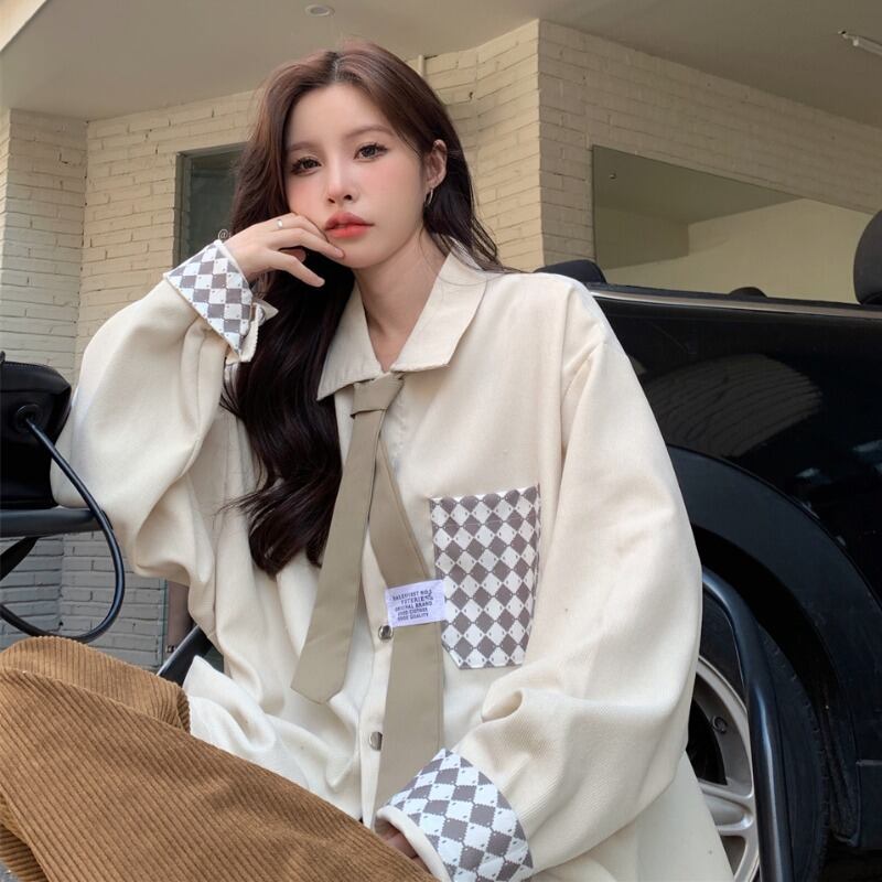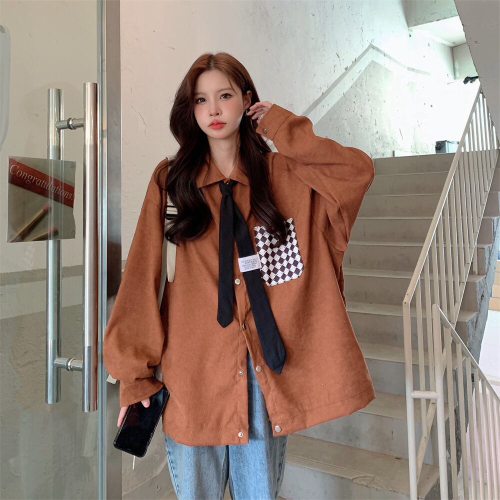 トップス レディース 2色 シャツ 長袖 ボリューム袖 ポロカラー ストレート ゆったり ポケット 前開き コーデュロイ かわいい 大人可愛い カジュアル おしゃれ かっこいい クール ストリート おとな ナチュラル こなれ感 マニッシュ キュート ガーリー ルーズ 個性的 アーガイル 学生 通学 デート お出かけ 女子会 散歩 カフェ巡り 送料無料 M L XL 大きいサイズ オーバーサイズ アプリコット ブラウン 秋 冬 10代 20代 30代 ママ 韓国系 着回し 普段使い 体型カバー 楽ちん モテ