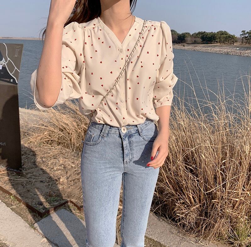 ハートの形をしたドット柄がとっても可愛いシフォンブラウス♡