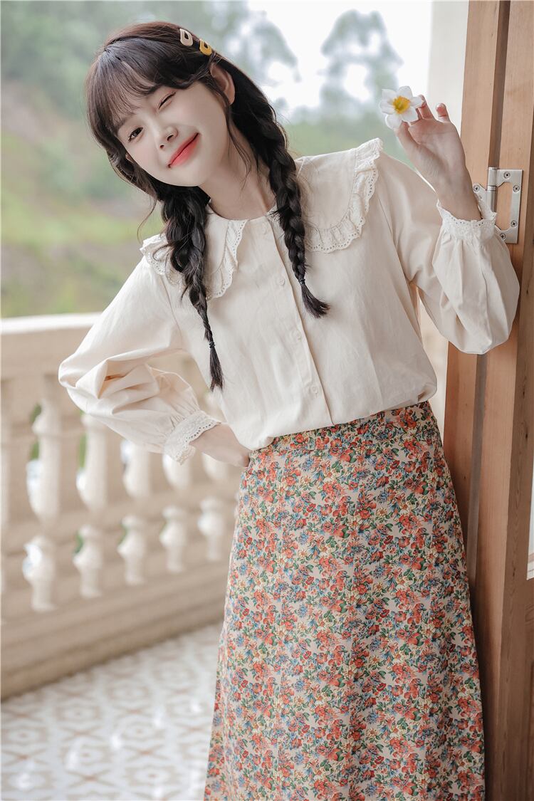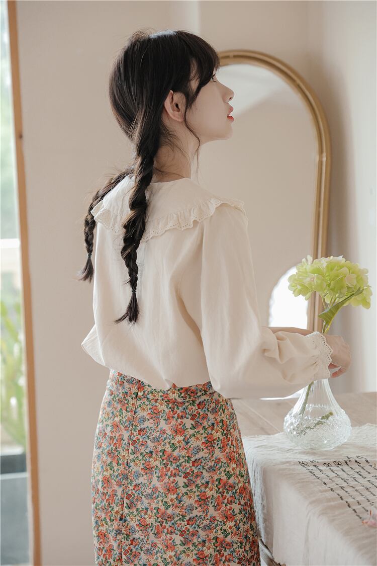 トップス レディース シャツ ブラウス 袖あり 長袖 襟付き レース かわいい 大人可愛い シンプル カジュアル フェミニン おしゃれ お洒落 ナチュラル ラフ ラブリー キュート ガーリー 個性的 レトロ モダン ロマンチック 抜け感 無地 OL 通勤 学生 通学 デート お出かけ 女子会 休日 アウトドア 旅行 散歩 カフェ巡り 送料無料 フリーサイズ アプリコット 春 秋 10代 20代 30代 40代 ママ 女性用 韓国 着回し 普段使い 重ね着 体型カバー コーデ スタイル プチプラ モテ