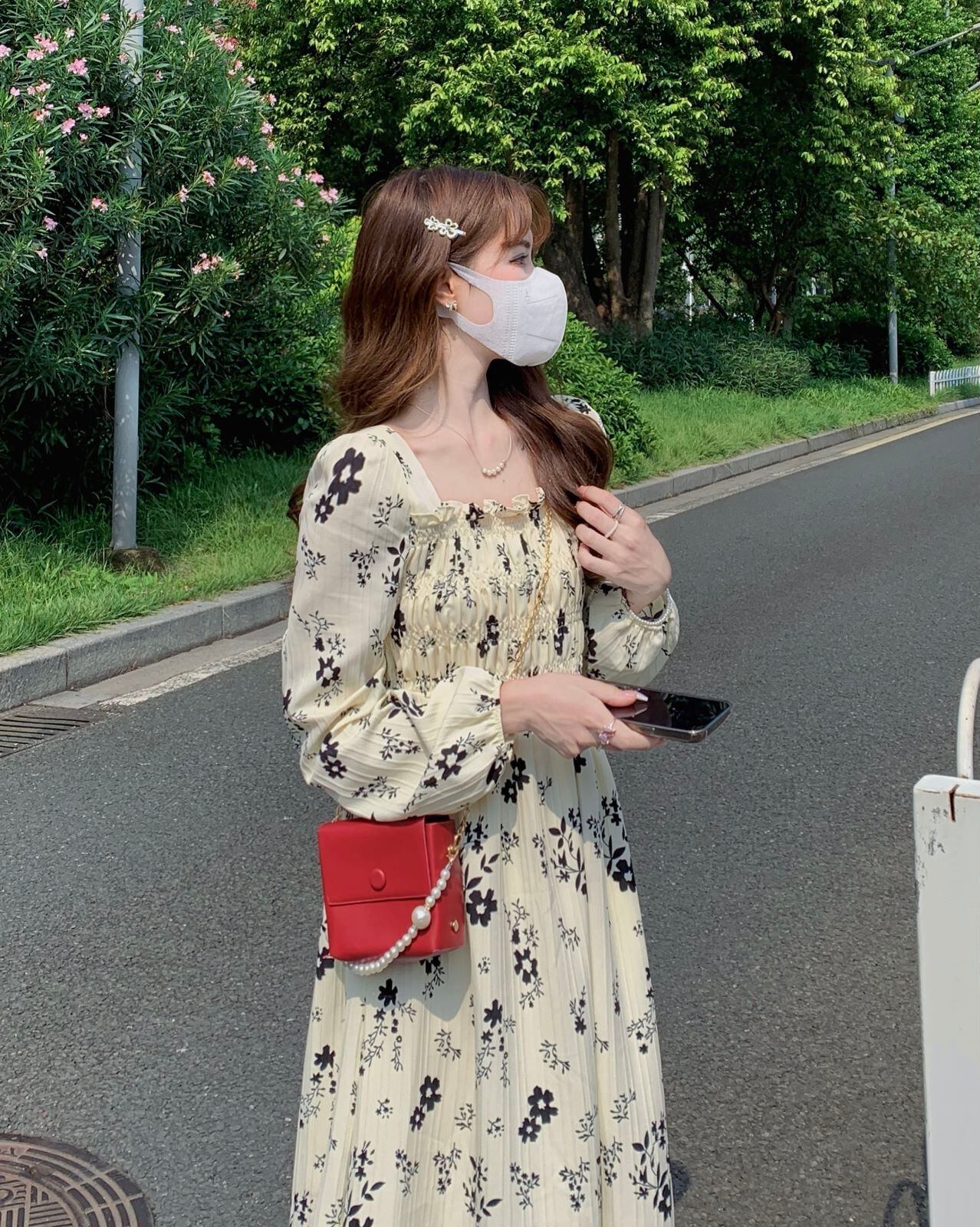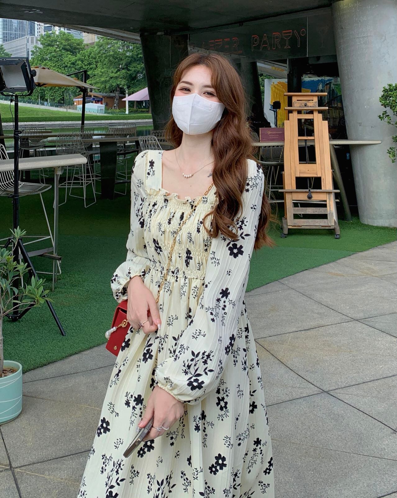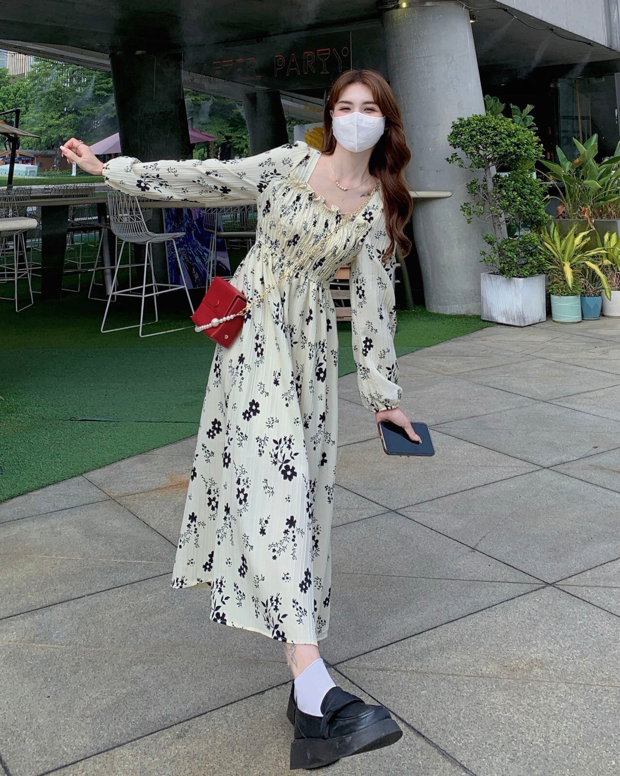ワンピース レディース ロング ロング丈 長袖 ロングワンピース スクエアネック Aライン フリル フレア ウエストマーク ギャザー かわいい 大人可愛い きれいめ カジュアル ボタニカル エレガント 清楚 フェミニン おしゃれ お洒落 綺麗 お嬢様 ナチュラル こなれ感 ラブリー キュート ガーリー ロマンチック 抜け感 送料無料 存在感 花柄 小花柄 フラワー 学生 通学 デート お出かけ 女子会 フリーサイズ 春 10代 20代 30代 韓国 韓国系 着回し モテ トレンド 流行 インスタ映え