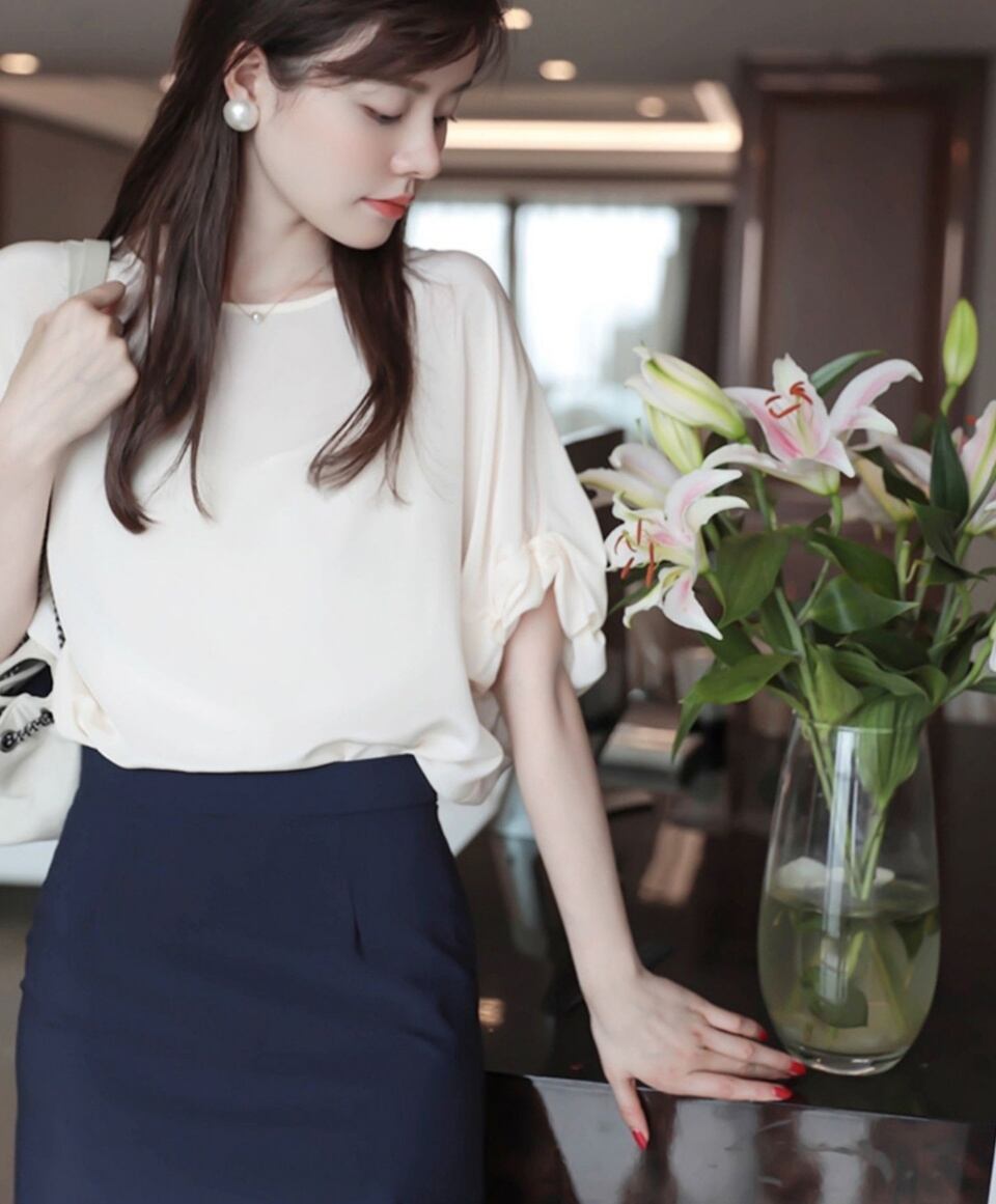 シフォンのやわらかい素材感が上品な半袖ブラウス。