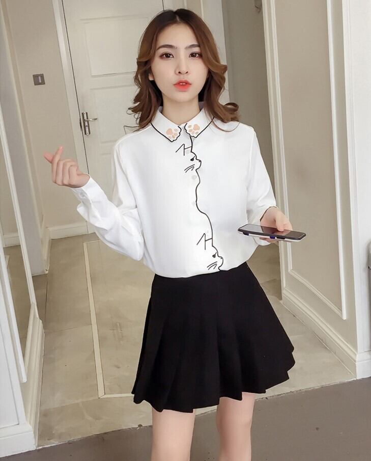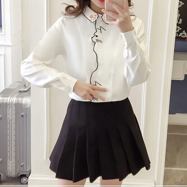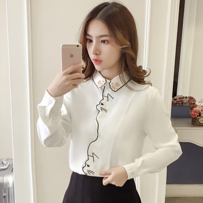 トップス レディース シャツ ブラウス 長袖 ポロカラー スリム タイト 細身 ストレート ボタン ポリエステル かわいい 大人可愛い きれいめ シンプル カジュアル フェミニン おしゃれ 綺麗 おとな ナチュラル こなれ感 ラブリー キュート ガーリー 個性的 レトロ 抜け感 華やか 無地 ねこ 通勤 学生 通学 デート お出かけ 女子会 散歩 カフェ巡り 送料無料 S M L XL ホワイト 春 秋 冬 10代 20代 ママ 韓国系 着回し 普段使い ファッション コーデ モテ トレンド 流行