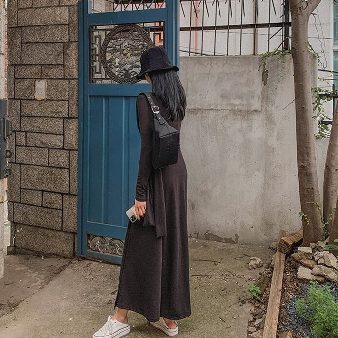 ワンピース レディース ロングワンピース ロング丈 Vネック 長袖 長袖ワンピース 可愛い かわいい シンプル オシャレ お洒落 おしゃれ ラフ ラブリー キュート セクシー S M L XL アプリコット ブラック 無地 ゆる 楽ちん 学生 大学生 デート お出かけ ショッピング 買い物 公園 ピクニック ランチ 女子会 お泊まり 休日 旅行 普段使い 韓国 韓国系 送料無料 双子 10代 20代 30代 ママ 散歩 ファッション コーデ スタイル モテ トレンド 流行 インスタ インスタ映え カメラ
