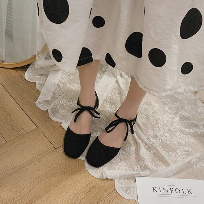 アンクルストラップのリボンのディテールがキュートなパンプスです^^