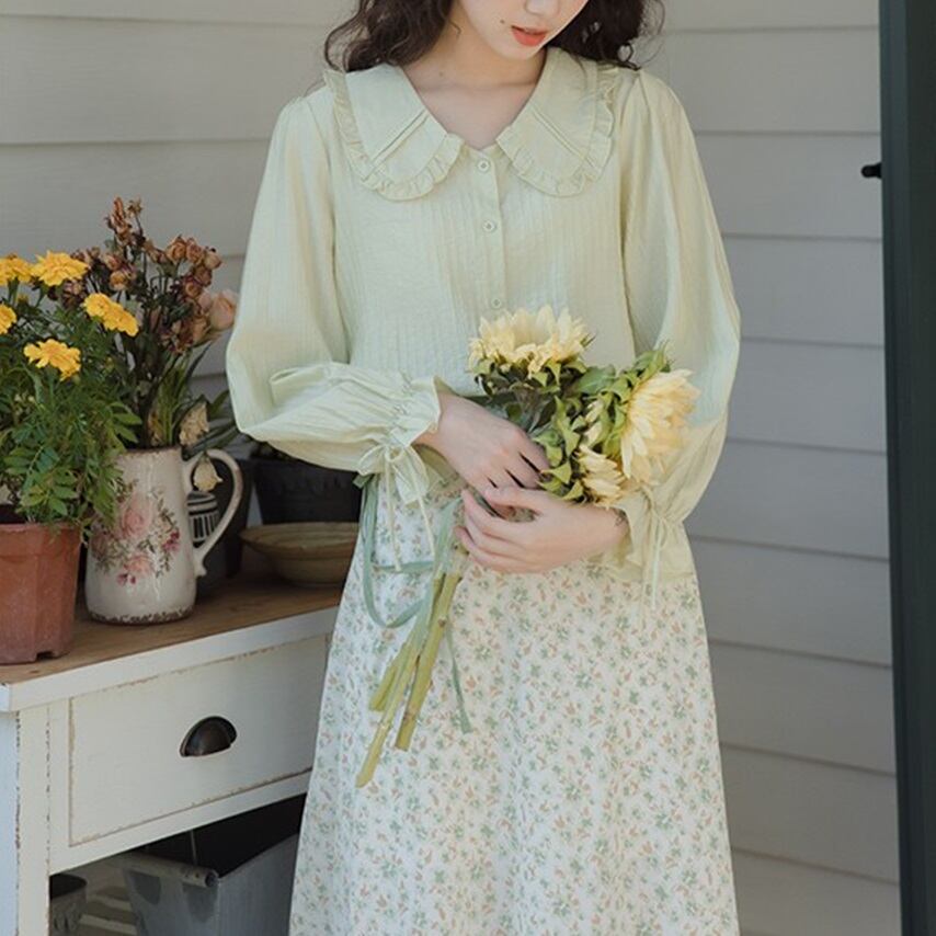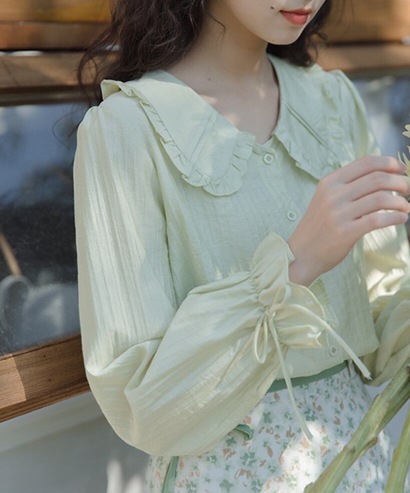 トップス レディース シャツ ブラウス 袖あり 長袖 襟付き 丸襟 フリル かわいい 大人可愛い シンプル カジュアル フェミニン おしゃれ お洒落 ナチュラル ラフ ラブリー キュート ガーリー 個性的 レトロ モダン ロマンチック 抜け感 無地 OL 通勤 学生 通学 デート お出かけ 女子会 休日 アウトドア 旅行 散歩 カフェ巡り 送料無料 S M L ライトグリーン 春 秋 10代 20代 30代 40代 ママ 女性用 韓国 着回し 普段使い 重ね着 体型カバー コーデ スタイル プチプラ モテ