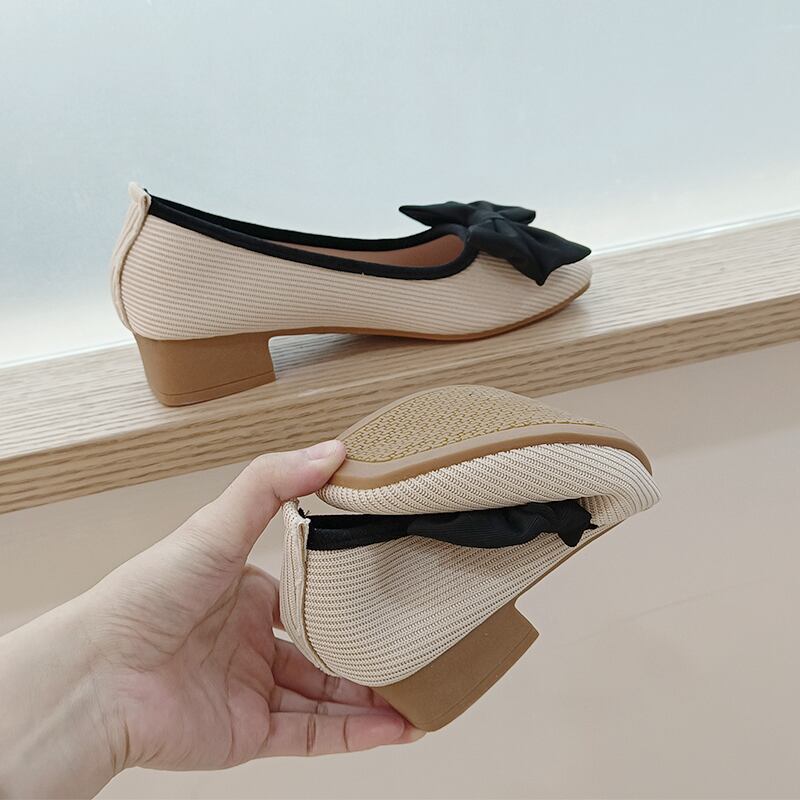 大人可愛いローヒールパンプス★大きなリボンがポイントのラウンドトゥ♪