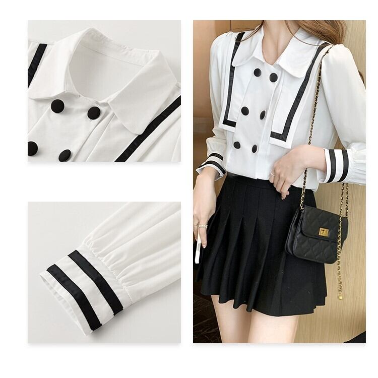 シンプルなダブルブレストボタンの配色長袖シャツ★