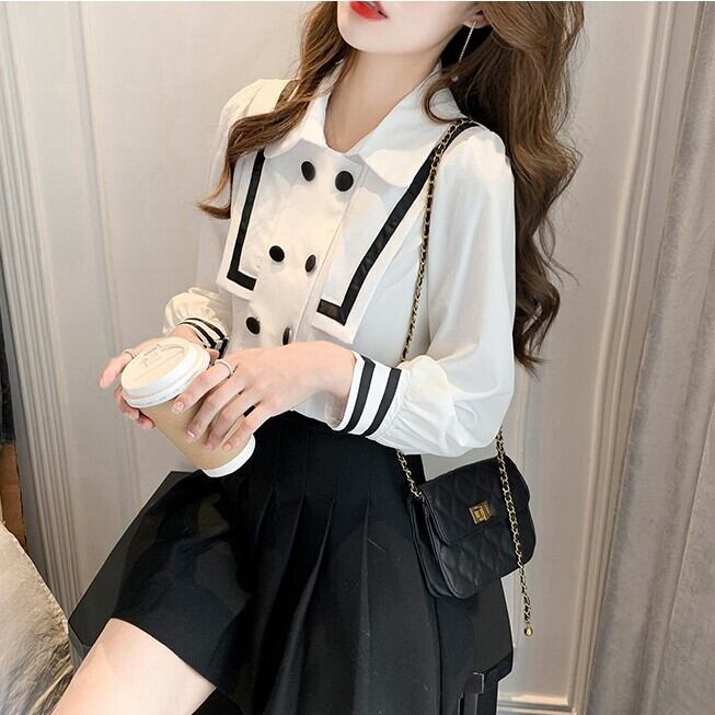 トップス レディース シャツ ブラウス 長袖 ポロカラー スリム 細身 ストレート ボタン かわいい 大人可愛い シンプル カジュアル おしゃれ 綺麗 お嬢様 おとな ナチュラル ラブリー キュート ガーリー 個性的 レトロ アンティーク 無地 通勤 学生 通学 デート お出かけ 女子会 散歩 美術館巡り アート鑑賞 コンサート カフェ巡り 送料無料 S M L XL 2XL ホワイト モノトーン 春 秋 10代 20代 ママ 韓国系 着回し 普段使い ファッション コーデ スタイル モテ トレンド 流行