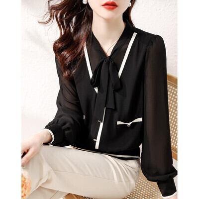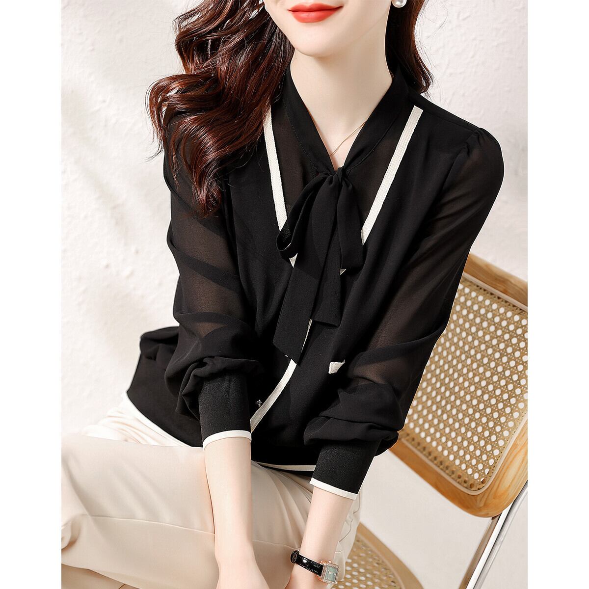 トップス レディース ブラウス ボウタイブラウス シャツ 長袖 Vネック リボン リボンタイ かわいい 大人可愛い きれいめ 大人 上品 おしゃれ お洒落 シック 清楚 大人女子 かっこいい クール エレガント おとな ナチュラル こなれ感 個性的 送料無料 抜け感 綺麗 お嬢様 無地 ブラック 黒 春 秋 ロングシーズン 20代 30代 40代 ビジネス OL 通勤 デート お出かけ 女子会 美術館巡り パーティー イベント ホテル レストラン S M L XL 着回し 普段使い フェイクツーピース