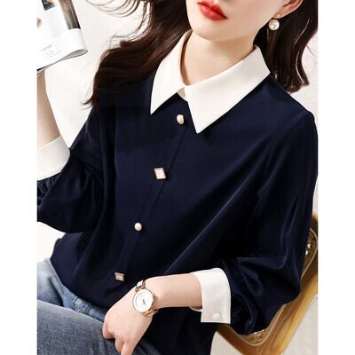 トップス レディース ブラウス シャツ 長袖 襟つき かわいい 大人可愛い きれいめ 大人 上品 おしゃれ お洒落 シック 清楚 フォーマル 大人女子 かっこいい クール モード エレガント おとな ナチュラル こなれ感 個性的 送料無料 抜け感 綺麗 お嬢様 きちんと感 無地 ネイビー 紺 春 秋 ロングシーズン 10代 20代 30代 40代 ビジネス OL 通勤 デート お出かけ 女子会 美術館巡り パーティー イベント ホテル レストラン お呼ばれ S M L XL 着回し 普段使い インスタ映え