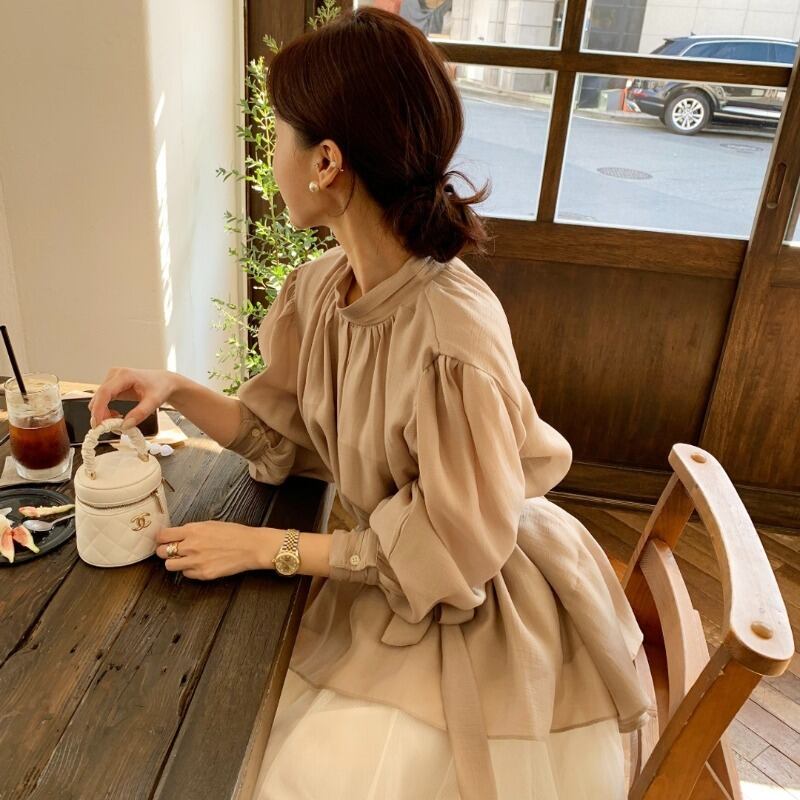 トップス レディース シャツ ブラウス 長袖 ランタンスリーブ ラウンドネック ワイド シフォン ウエストリボン かわいい 大人可愛い きれいめ シンプル カジュアル 大人 上品 おしゃれ お洒落 レトロ アジアン 大人女子 こなれ感 とろみ感 抜け感 無地 春 夏 誕生日 10代 20代 30代 40代 オフィス ビジネス OL 通勤 学生 通学 デート お出かけ 女子会 休日 イベント リゾート ホテル レストラン 韓国 韓国系 送料無料 ファッション コーデ スタイル 楽ちん モテ 定番 トレンド