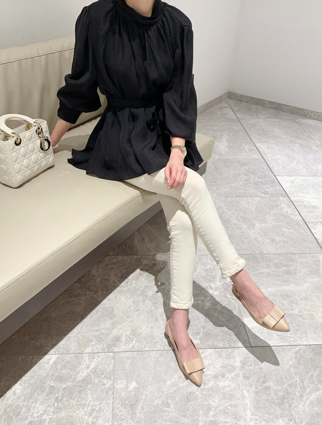 ウエストにリボン付きでシルエットの調整もできちゃいます◎