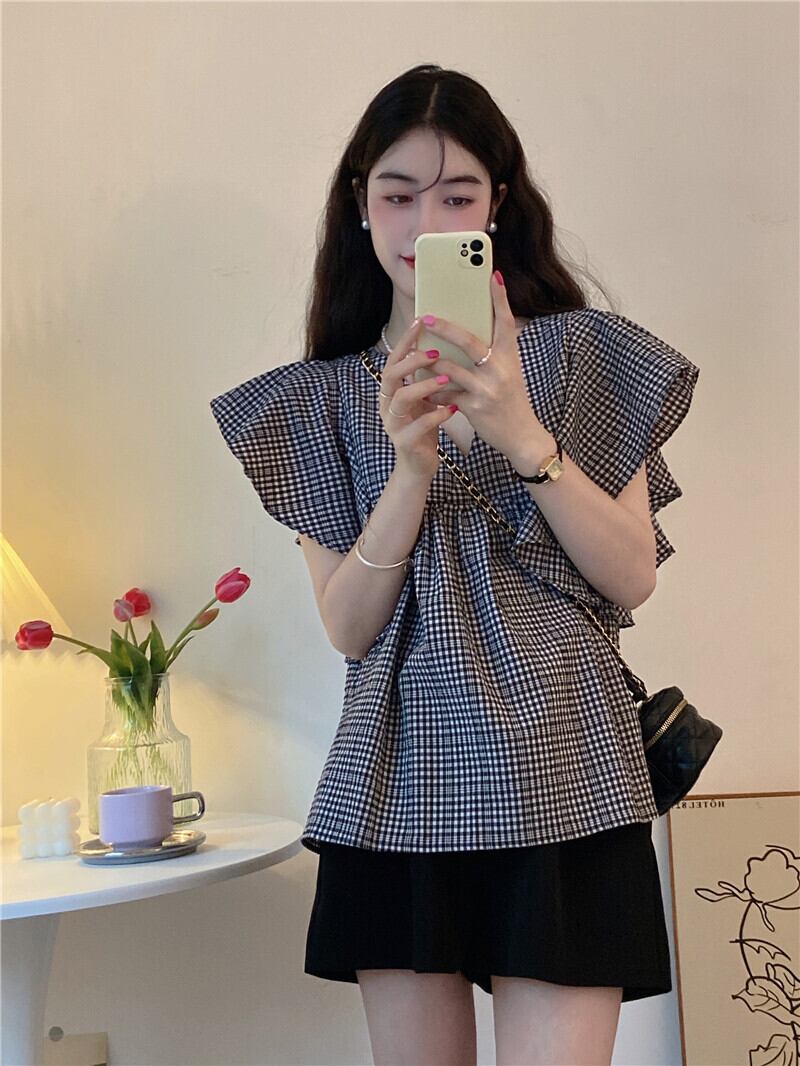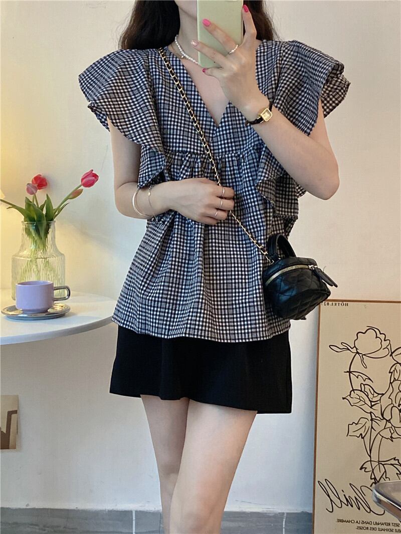 トップス レディース シャツ ブラウス M L XL 2XL 3XL 4XL 半袖 Vネック フリル かわいい 大人可愛い きれいめ カジュアル エレガント フェミニン おしゃれ お洒落 おとな ナチュラル こなれ感 キュート 抜け感 送料無料 存在感 無地 学生 通学 デート お出かけ 女子会 休日チェック柄 春 夏 20代 30代 40代 ママ 韓国 韓国系 着回し 普段使い 体型カバー ファッション コーデ スタイル モテ トレンド 流行 インスタ映え