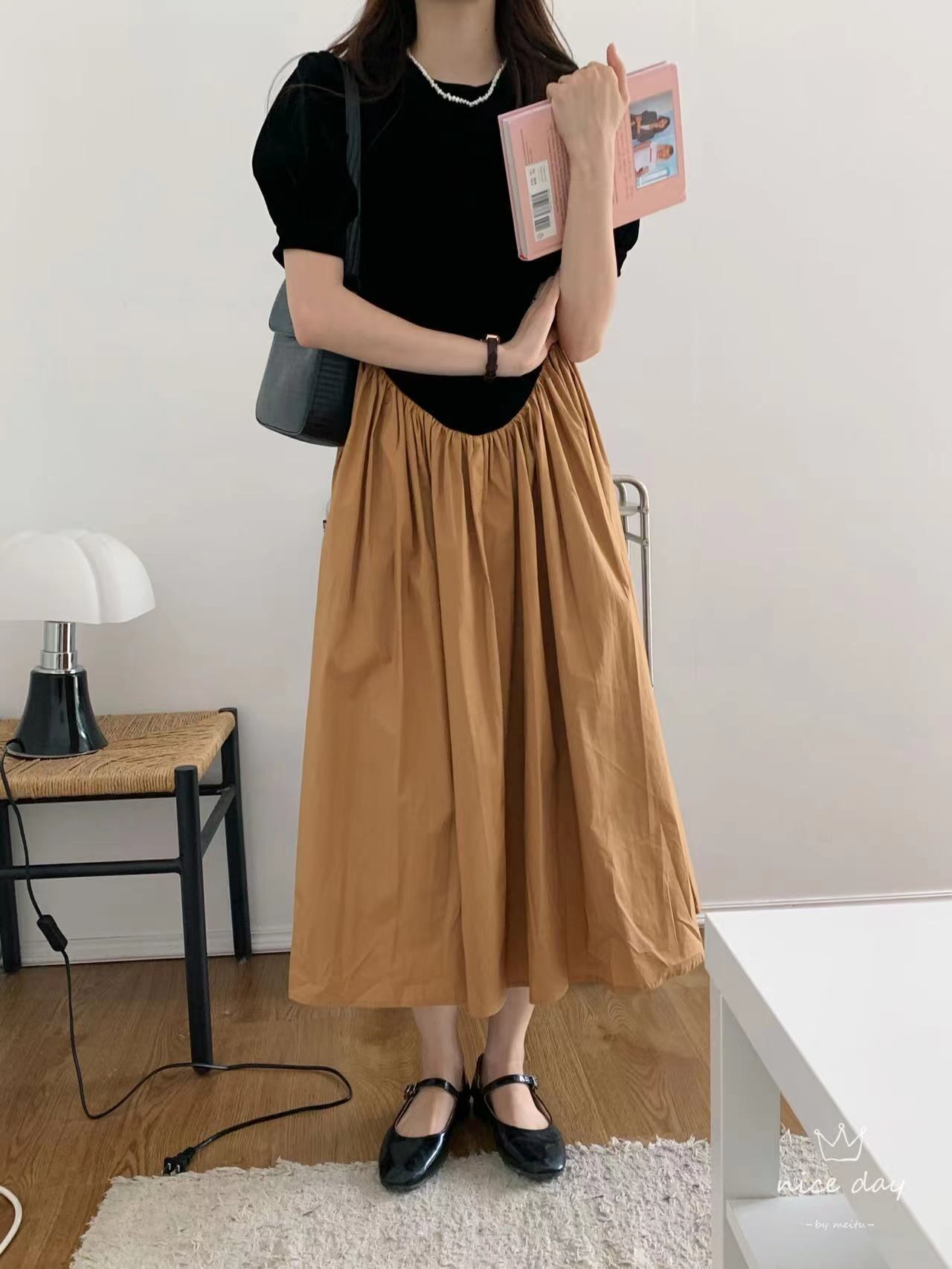 ワンピース レディース ロングワンピース 袖あり 半袖 ラウンドネック パフスリーブ かわいい 大人可愛い きれいめ カジュアル 清楚 おしゃれ お洒落 おとな ナチュラル こなれ感 キュート 個性的 抜け感 送料無料 存在感 無地 学生 通学 デート お出かけ 女子会 カフェ巡り 街歩き お買い物 S M L 夏 20代 30代 40代 50代 ママ 女性用 韓国 韓国系 着回し 普段使い 体型カバー 楽ちん ファッション コーデ モテ トレンド 流行 インスタ映え