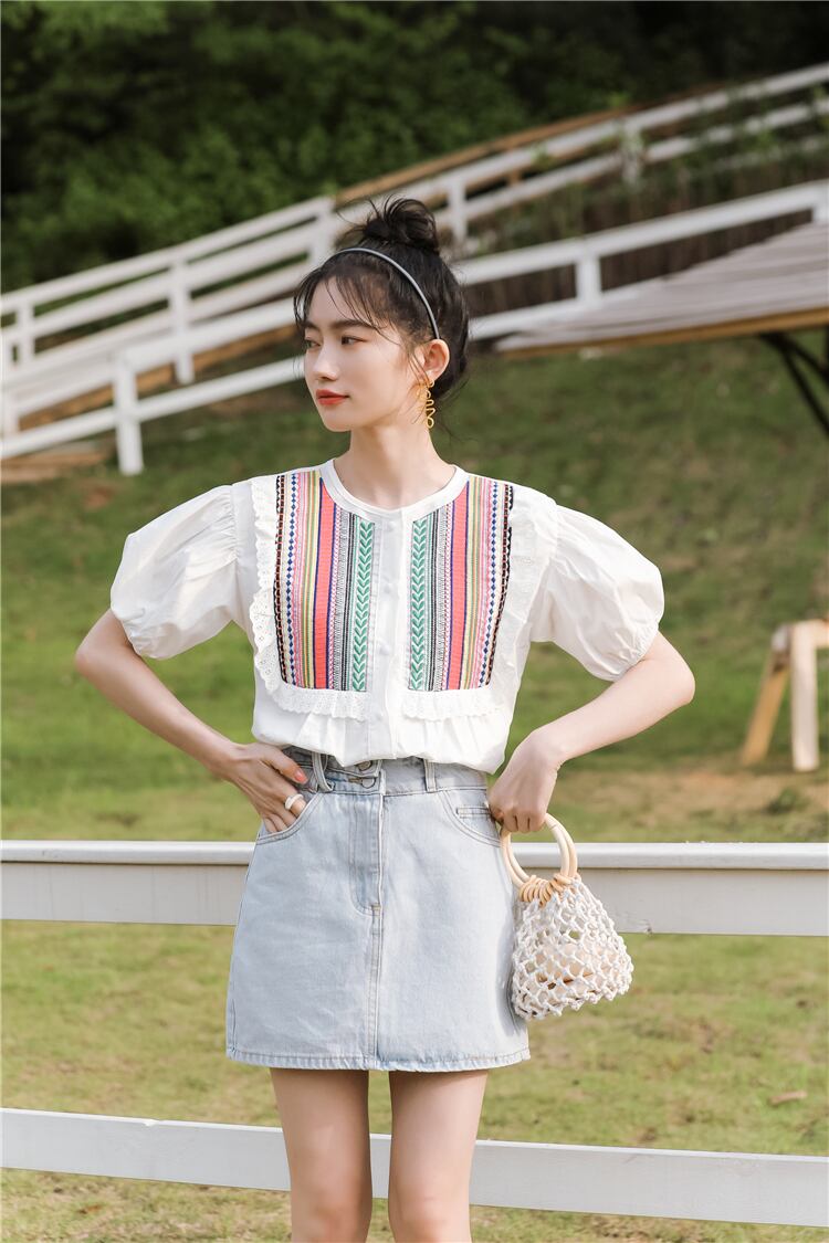 トップス レディース シャツ ブラウス 袖あり 半袖 パフスリーブ レース 刺繍 かわいい 大人可愛い シンプル カジュアル フェミニン お洒落 おとな ナチュラル こなれ感 キュート ガーリー 個性的 レトロ モダン 抜け感 学生 通学 デート お出かけ 女子会 休日 旅行 散歩 カフェ巡り 街歩き 公園デビュー S M L ホワイト 白 春 夏 10代 20代 30代 40代 ママ 女性用 韓国 韓国系 着回し 普段使い 重ね着 体型カバー ファッション コーデ スタイル プチプラ モテ トレンド