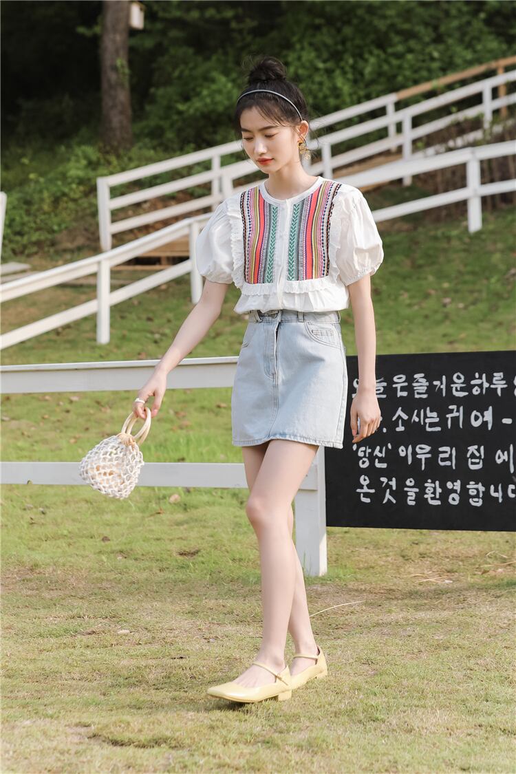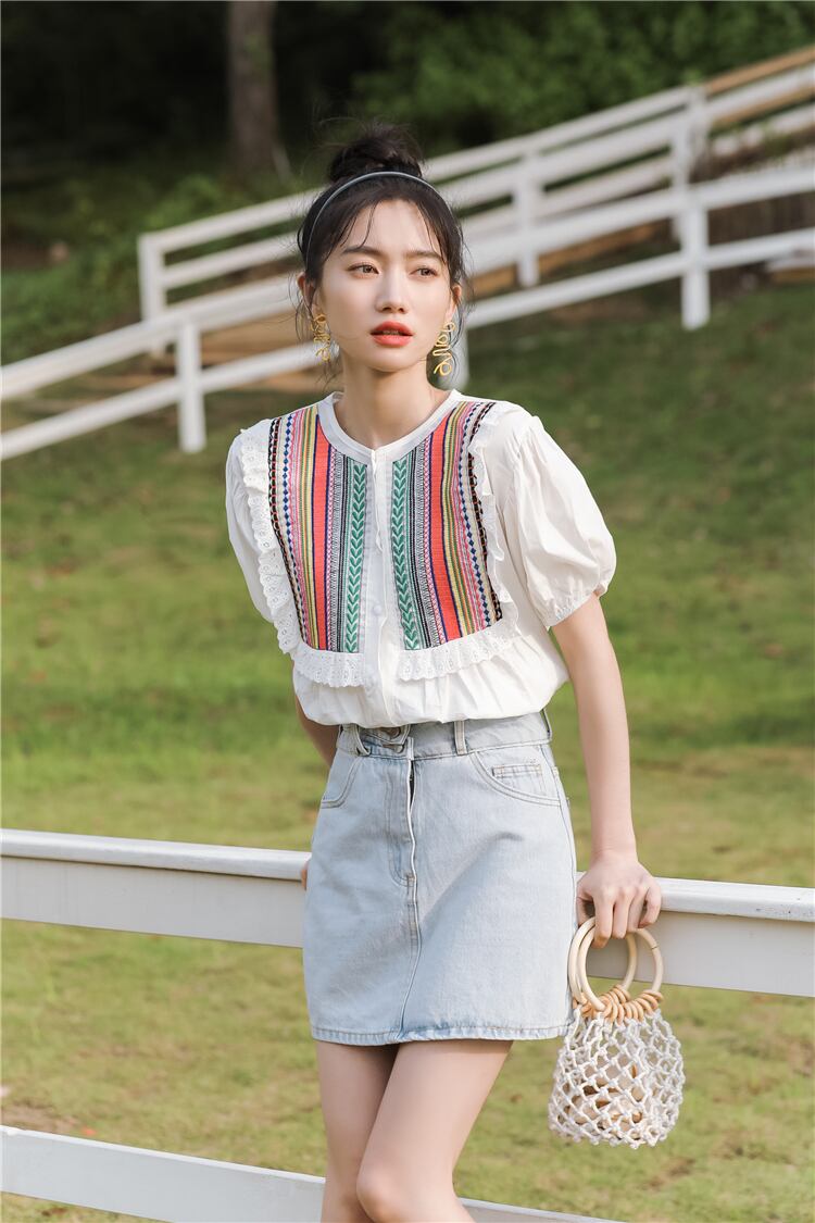 民族調の刺繍デザインがとっても可愛い半袖ブラウス♡