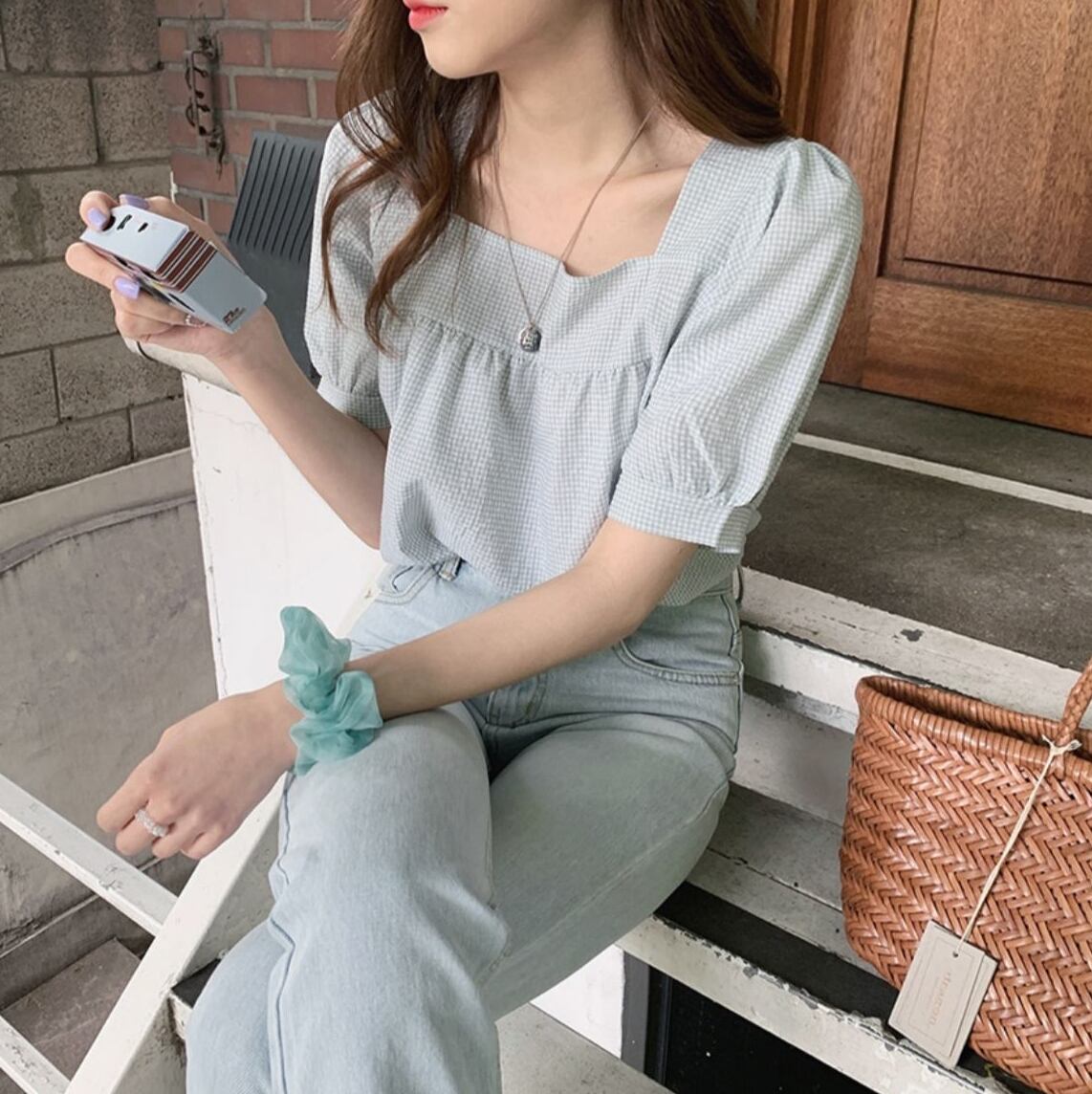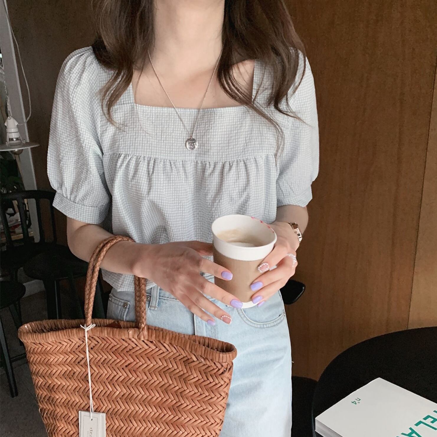 トップス レディース 半袖 半袖トップス ブラウス スクエアネック かわいい 可愛い きれいめ シンプル 清楚 清楚系 ナチュラル 大人 上品 おしゃれ お洒落 オシャレ 大人可愛い 大人女子 ラブリー キュート S M L XL ミントグリーン ブラック 柄 夏 誕生日 バースデー ランチ 記念日 ママ 学生 大学生 カフェ 通学 デート お出かけ ショッピング 買い物 休日 女子会 旅行 リゾート 公園 ピクニック ファッション コーデ スタイル モテ インスタ インスタ映え トレンド 流行 韓国