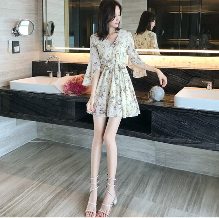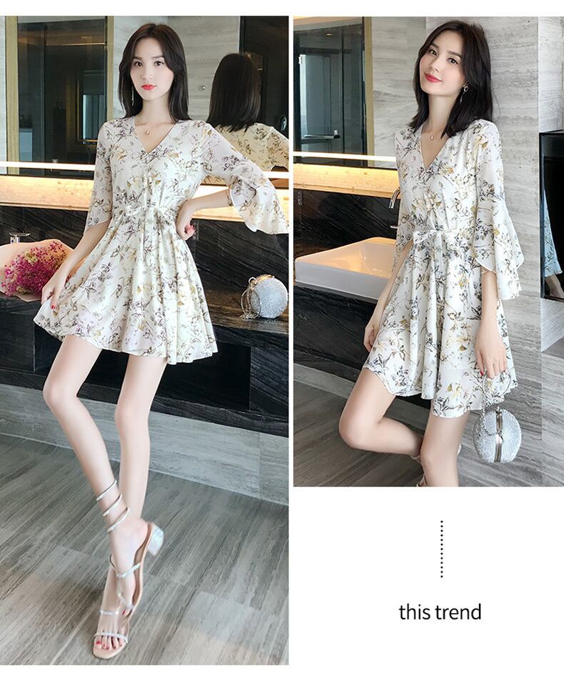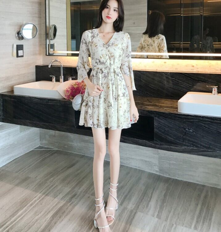 ワンピース レディース ミニワンピース ミニ丈 七分袖 Vネック シフォン かわいい 大人可愛い きれいめ 上品 エレガント 清楚 フェミニン おしゃれ お洒落 綺麗 お嬢様 ナチュラル こなれ感 ラブリー キュート ガーリー レトロ ロマンチック 抜け感 主役級 存在感 花柄 小花柄 学生 通学 デート お出かけ 女子会 S M L XL 2XL ブルー ベージュ 春 夏 10代 20代 30代 40代 韓国 韓国系 着回し 普段使い 体型カバー ファッション モテ トレンド 流行 インスタ映え