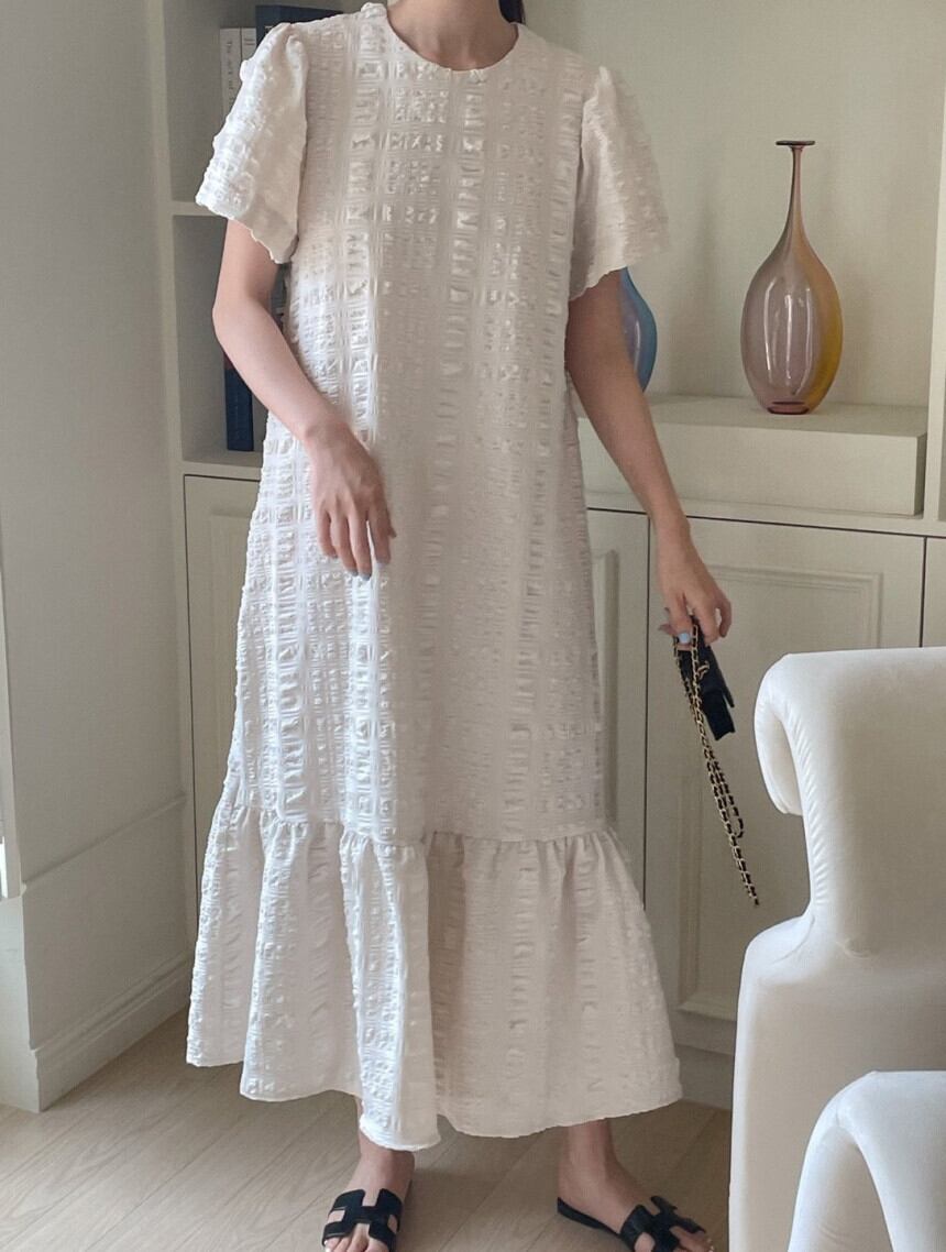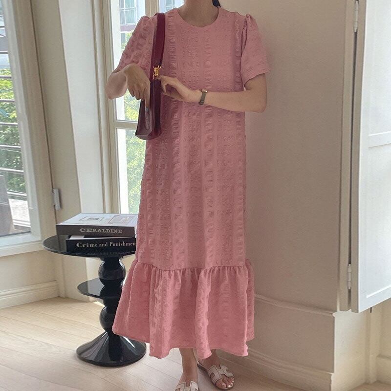 ワンピース レディース ロングワンピース ミモレ丈 ロング丈 半袖 フィッシュテール ティアード 黒 ブラック 白 ホワイト ピンク かわいい 大人可愛い きれいめ 上品 エレガント フェミニン おしゃれ お洒落 お嬢様 ラブリー キュート ガーリー レトロ 華やか 存在感 立体感 無地 通学 デート お出かけ 女子会 休日 散歩 カフェ巡り 街歩き 夏 10代 20代 30代 ワイド ゆったり シック おとな ナチュラル こなれ感 ラフ フリーサイズ 韓国 韓国系 着回し 普段使い 体型カバー 楽ちん