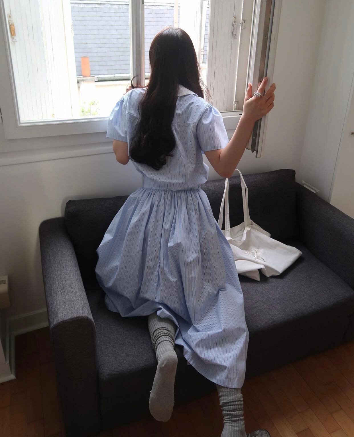 セットアップ レディース シャツ スカート ロングスカート ロング丈 半袖 襟付き ワイド かわいい 大人可愛い シンプル カジュアル おしゃれ モード系 ストリート おとな ナチュラル こなれ感 ラフ キュート ルーズ 個性的 リラックス 抜け感 爽やか ストライプ OL 学生 通学 デート お出かけ 女子会 休日 ワークアウト アウトドア リゾート 旅行 散歩 カフェ巡り 街歩き ブルー 青 夏 上下セット 2点セット ツーピース 10代 20代 韓国 韓国系 着回し 普段使い 体型カバー 楽ちん