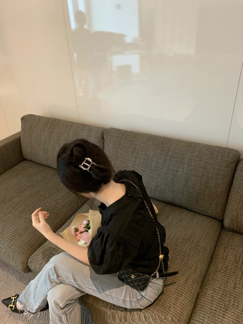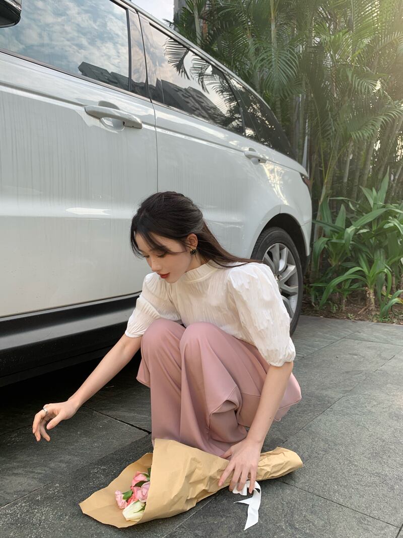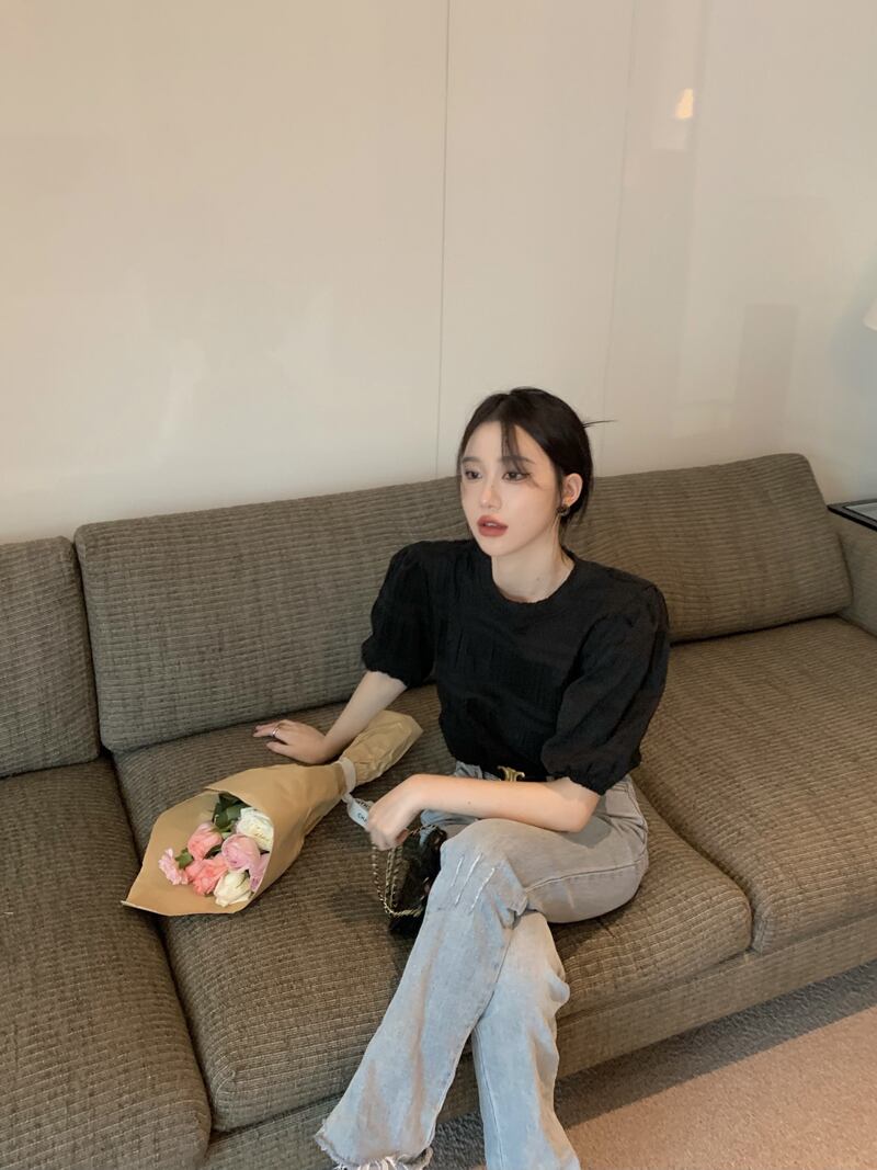 シャーリング×パフスリーブのフェミニンなシフォンブラウス♡