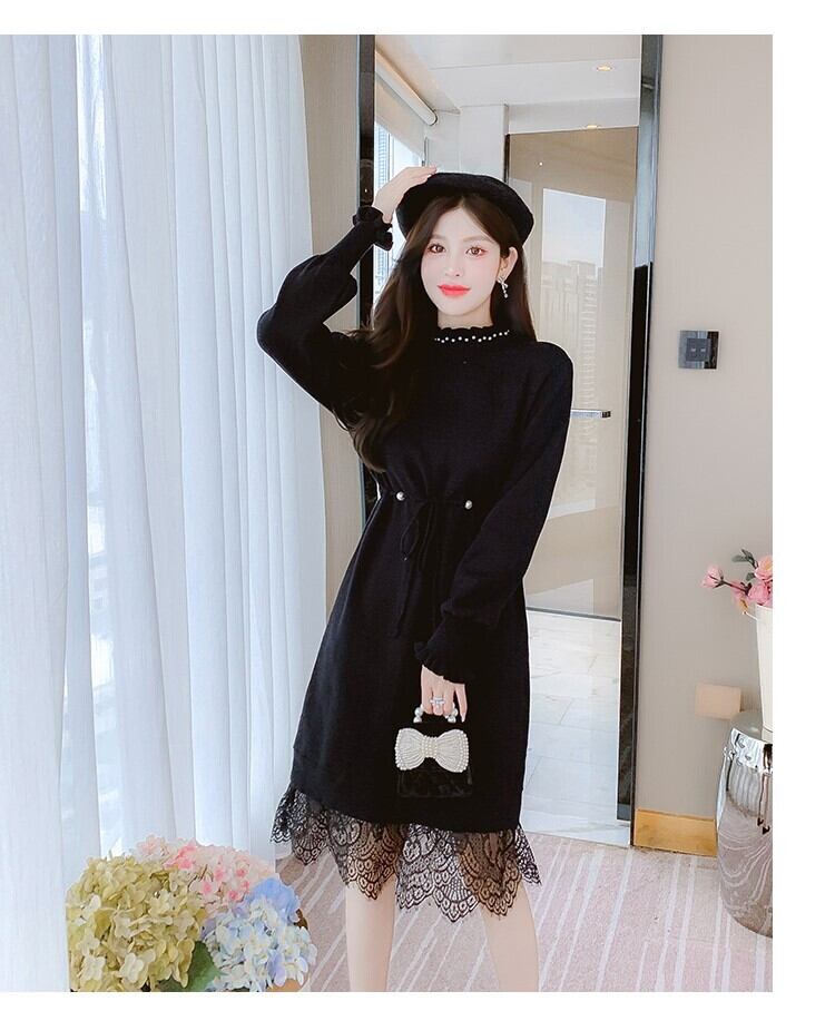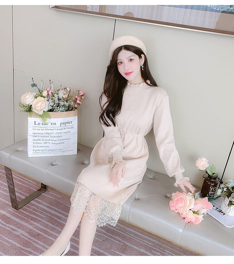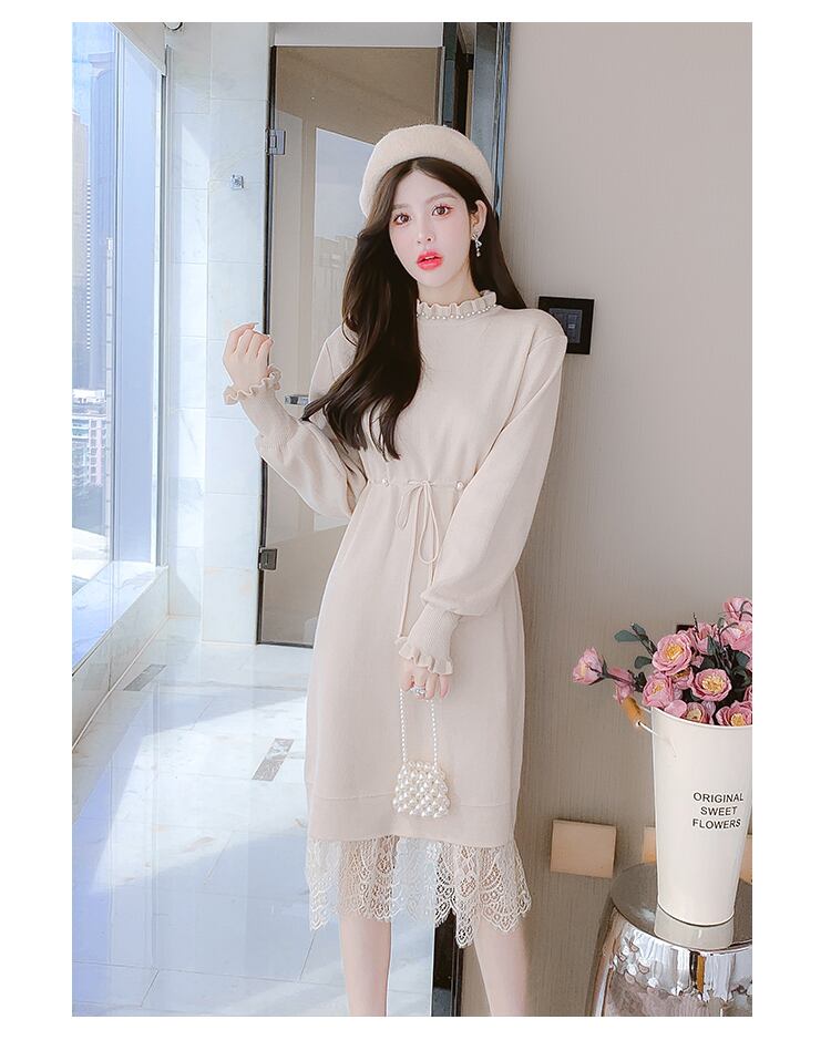 ワンピース レディース ミモレ ミモレ丈 ミディアム丈 長袖 レース ハイウエスト かわいい 大人可愛い きれいめ 上品 エレガント おしゃれ お洒落 お嬢様 おとな こなれ感 ラブリー キュート ロマンチック 抜け感 主役級 存在感 無地 学生 通学 デート お出かけ 女子会 休日 パーティー S M L XL ホワイト 白 ブラック 黒 秋 冬 20代 30代 40代 韓国 韓国系 着回し 普段使い 体型カバー ファッション コーデ モテ トレンド 流行