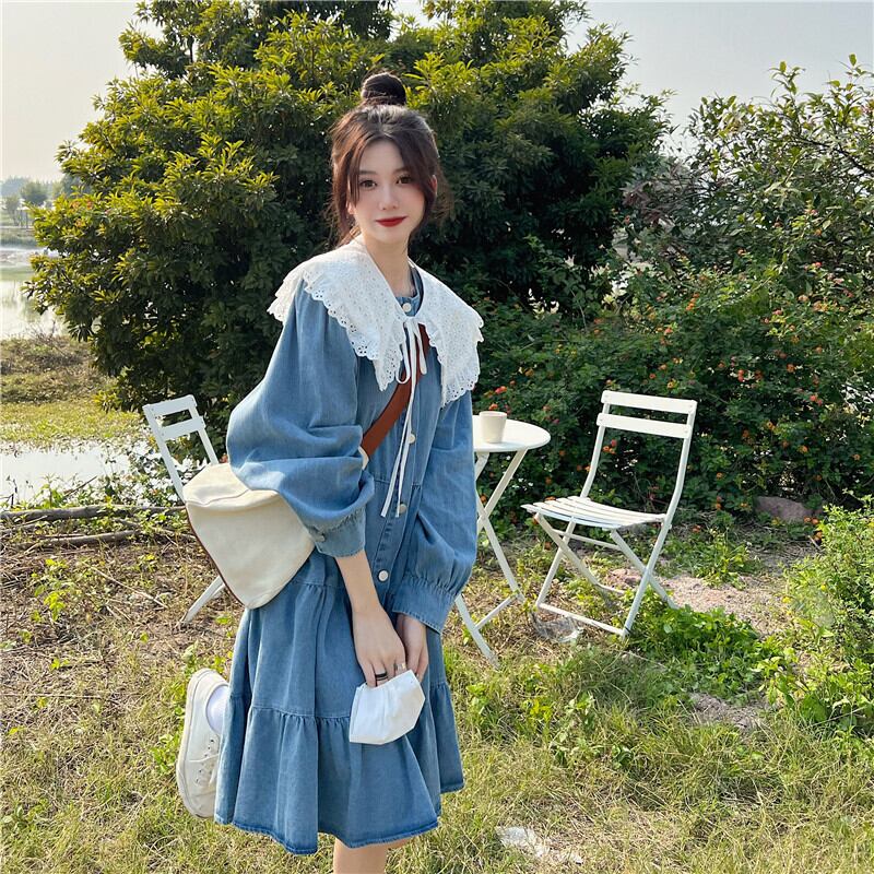 ワンピース レディース デニムワンピース 膝丈 ひざ丈 袖あり 長袖 付け襟 ティアード デニム かわいい 大人可愛い シンプル カジュアル フェミニン おしゃれ おとな ナチュラル こなれ感 ガーリー レトロ 抜け感 無地 学生 通学 デート お出かけ 女子会 休日 旅行 カフェ巡り 街歩き M L XL 2XL 3XL 4XL 大きいサイズ プラスサイズ ブルー 青 春 夏 秋 10代 20代 30代 40代 ママ 女性用 韓国 韓国系 着回し 普段使い 体型カバー 楽ちん プチプラ モテ 送料無料
