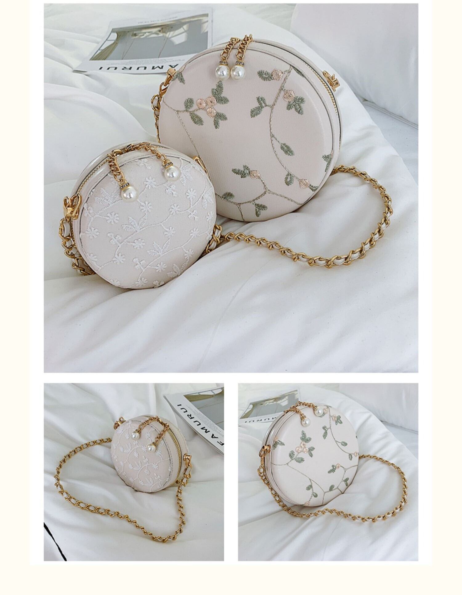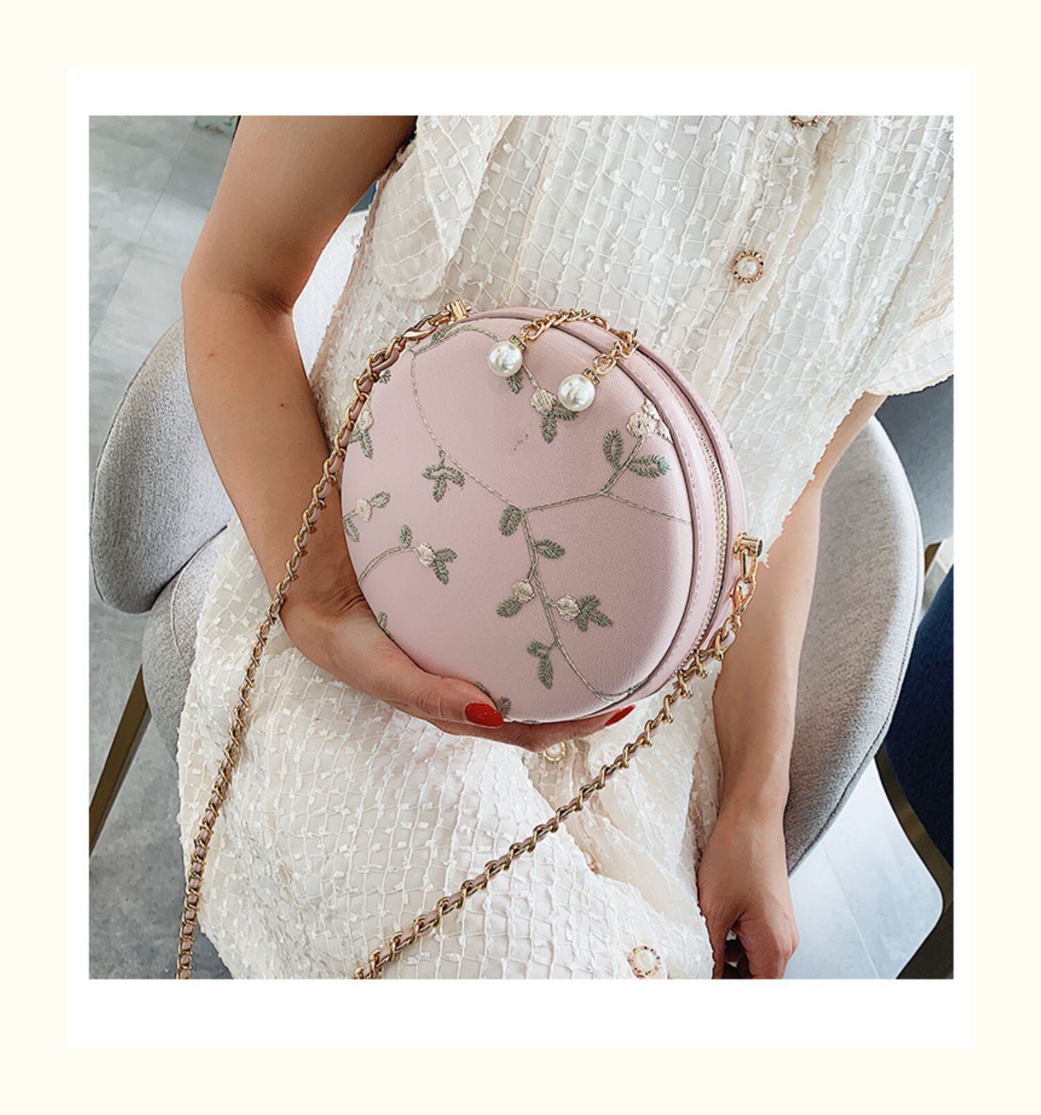 上品なフラワー刺繍がフェミニンなラウンド型バッグです^^