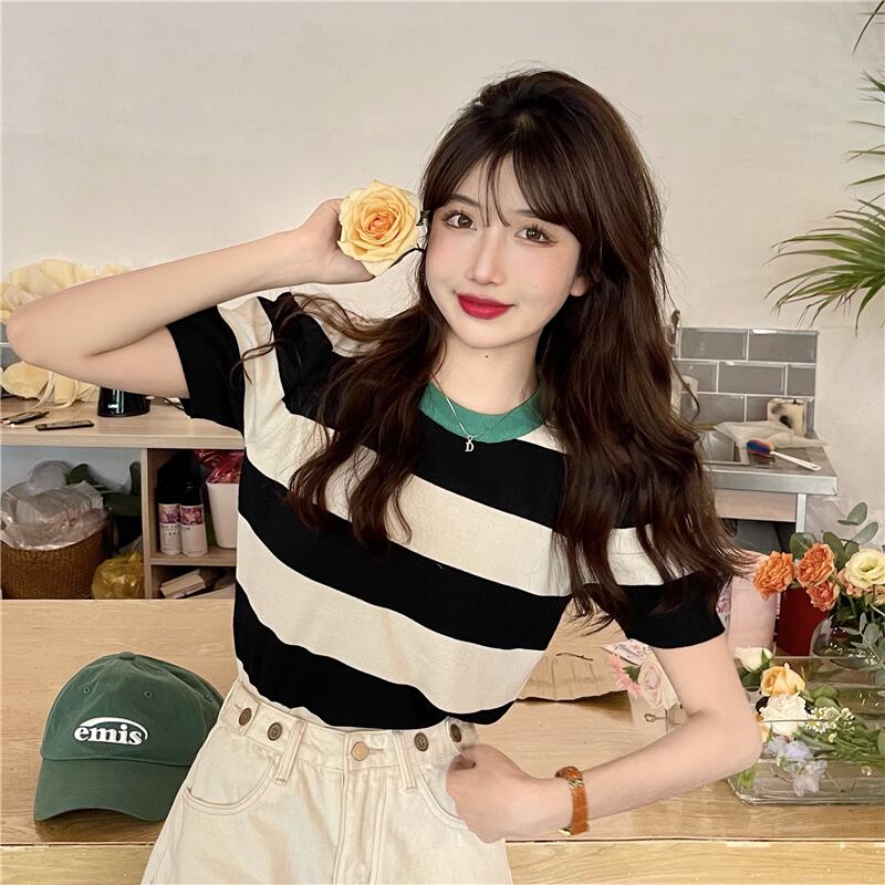 トップス レディース Tシャツ カットソー S M L XL 半袖 ラウンドネック かわいい 大人可愛い きれいめ シンプル カジュアル フェミニン おしゃれ お洒落 個性的 ナチュラル こなれ感 ラブリー キュート ガーリー シンプル 主役級 存在感 学生 通学 デート お出かけ 女子会 お泊まり 休日 カフェ巡り 街歩き お買い物 ストライプ ボーダー ブラック 黒 ブルー ネイビー 春 夏 10代 20代 韓国 韓国系 着回し 普段使い ファッション コーデ モテ トレンド 流行 送料無料