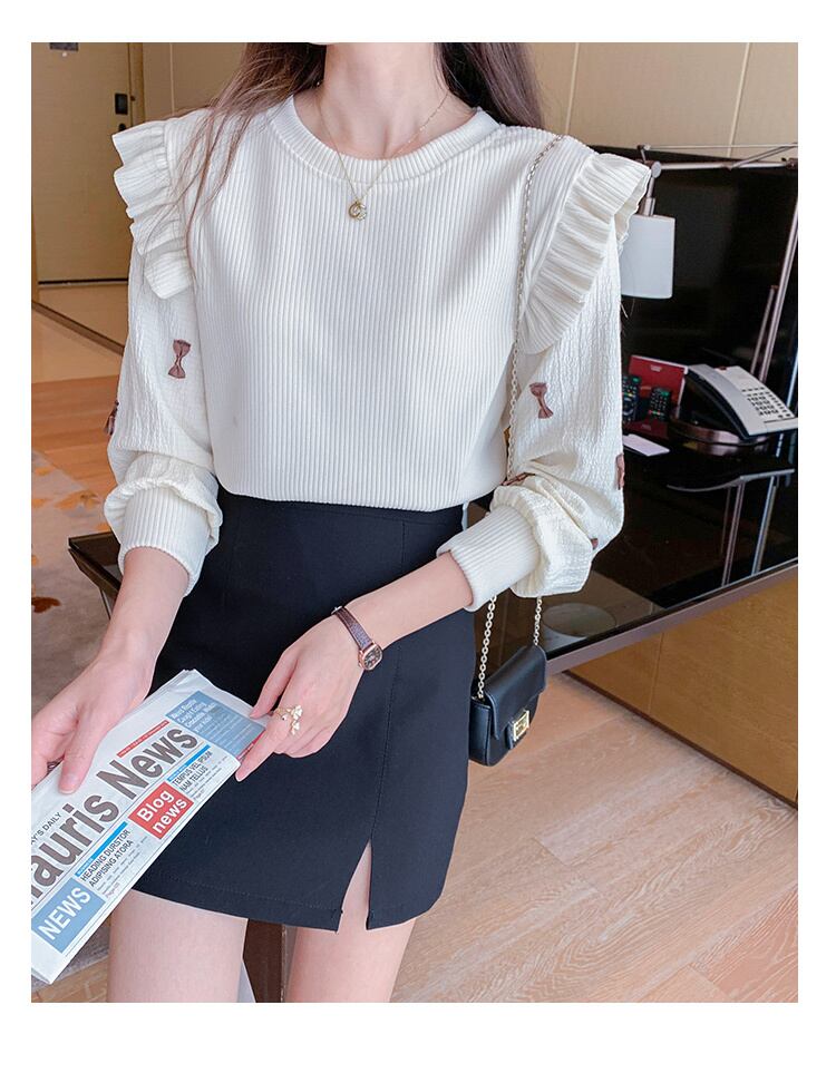 トップス レディース 送料無料 2色 ニット セーター 長袖 ラウンドネック フリル リボン かわいい 大人可愛い きれいめ 上品 清楚 フェミニン おしゃれ お洒落 綺麗 ナチュラル ラブリー キュート ガーリー ロマンチック 抜け感 主役級 存在感 無地 通勤 学生 通学 デート お出かけ 休日 カフェ巡り お買い物 S M L ホワイト 白 ブラック 黒 秋 冬 10代 20代 韓国 韓国系 着回し 普段使い ファッション コーデ モテ トレンド 流行 インスタ映え