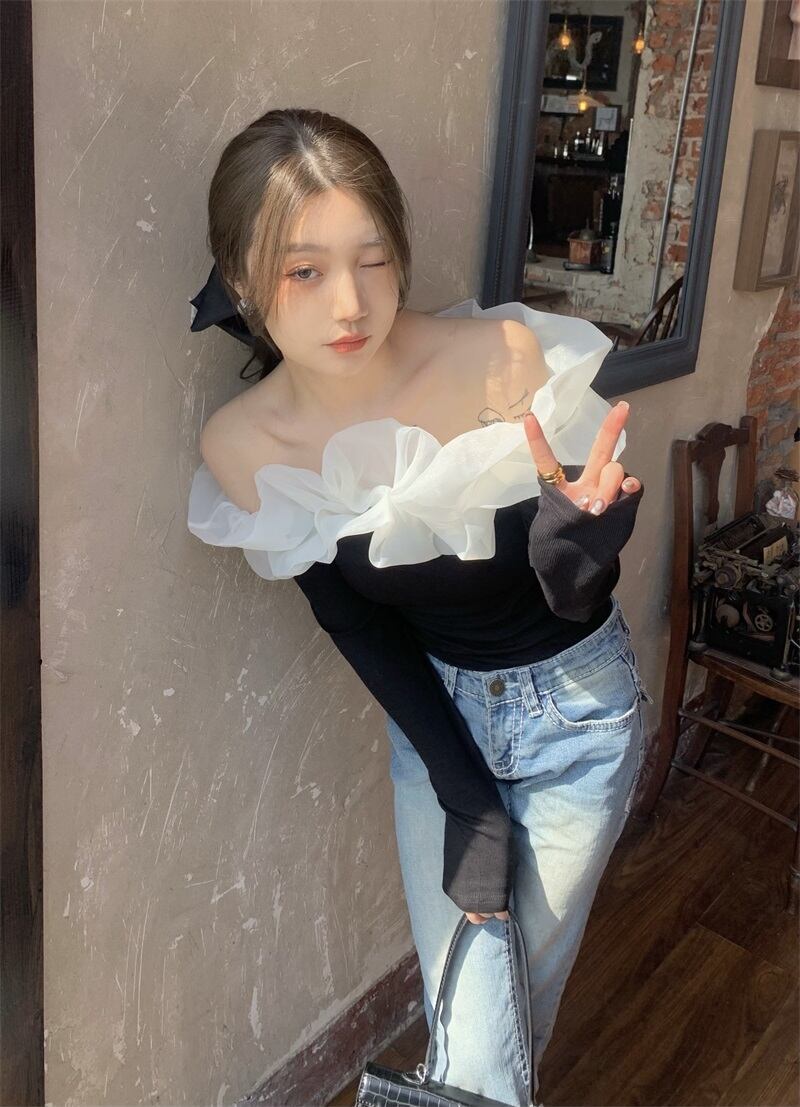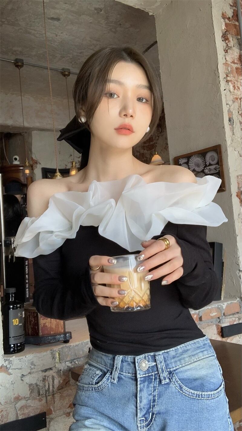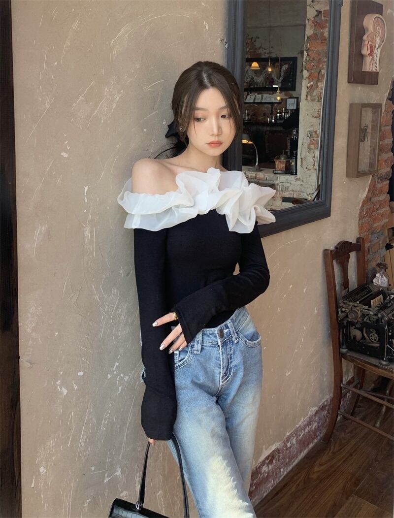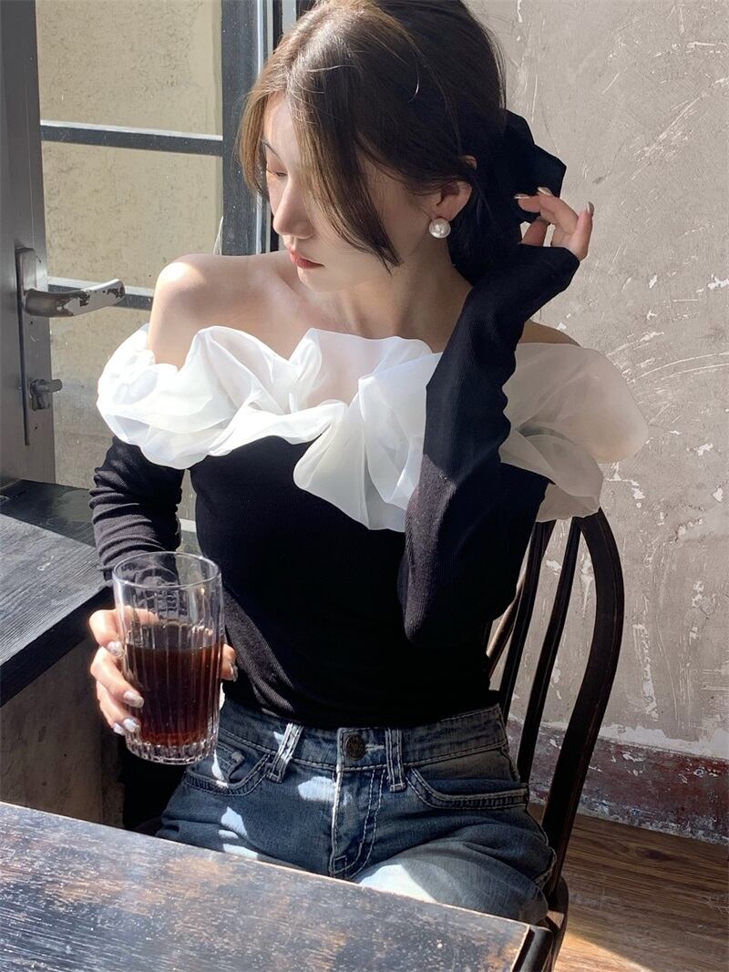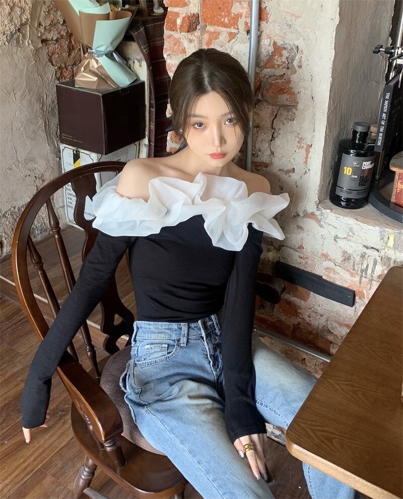トップス レディース カットソー 袖あり 長袖 オフショルダー オフショル スリム 細身 フリル 肌見せ かわいい 大人可愛い シンプル カジュアル フェミニン おしゃれ お洒落 セクシー おとな こなれ感 ラフ ラブリー キュート ガーリー ルーズ 個性的 レトロ 抜け感 無地 学生 通学 デート お出かけ 女子会 休日 旅行 カフェ巡り 街歩き S M L アプリコット ブラック 黒 春 夏 秋 誕生日 10代 20代 30代 40代 ママ 女性用 韓国 着回し 普段使い 体型カバー モテ 送料無料