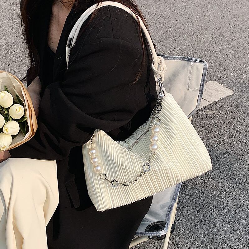 ギャザーとパールチェーンが可愛いショルダーバッグ♪