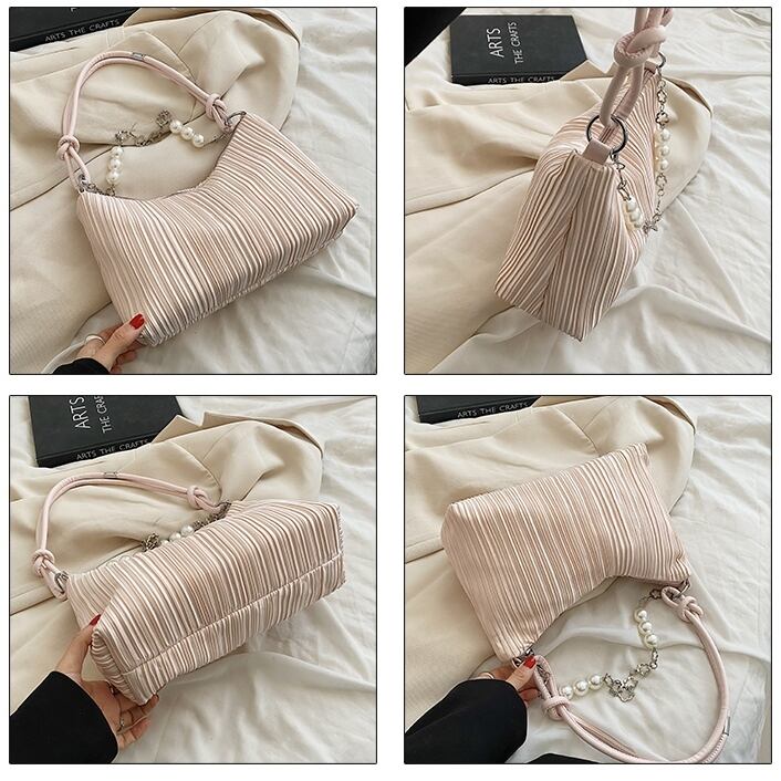 バッグ 鞄 カバン かばん レディース ショルダーバッグ ハンドバッグ ポシェット パールチェーン 収納 便利 肩がけ 肩掛け 手持ち コンパクト 使いやすい チャーム付き パール ファスナー チャーム ファスナー付き ギャザー PU かわいい 大人可愛い きれいめ 上品 エレガント 清楚 フェミニン シック おしゃれ お洒落 お嬢様 フォーマル おとな 送料無料 キュート ガーリー レトロ OL 通勤 学生 通学 デート お出かけ 女子会 ピンク ホワイト グレー