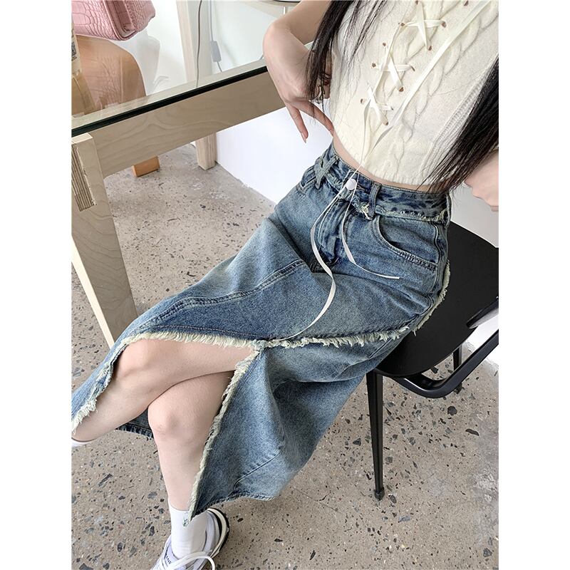 スカート レディース ロングスカート デニムスカート ロング スリット ハイウエスト ロング丈 サイドスリット ポケット デニム 大人可愛い シンプル カジュアル おしゃれ お洒落 かっこいい クール ストリート セクシー ナチュラル こなれ感 ラフ 個性的 リラックス 抜け感 存在感 無地 デート お出かけ 休日 リゾート 旅行 散歩 カフェ巡り 街歩き ショッピング S M L XL ブルー 10代 20代 30代 韓国 韓国系 着回し 普段使い 美脚 コーデ モテ 送料無料 デイリー インスタ映え