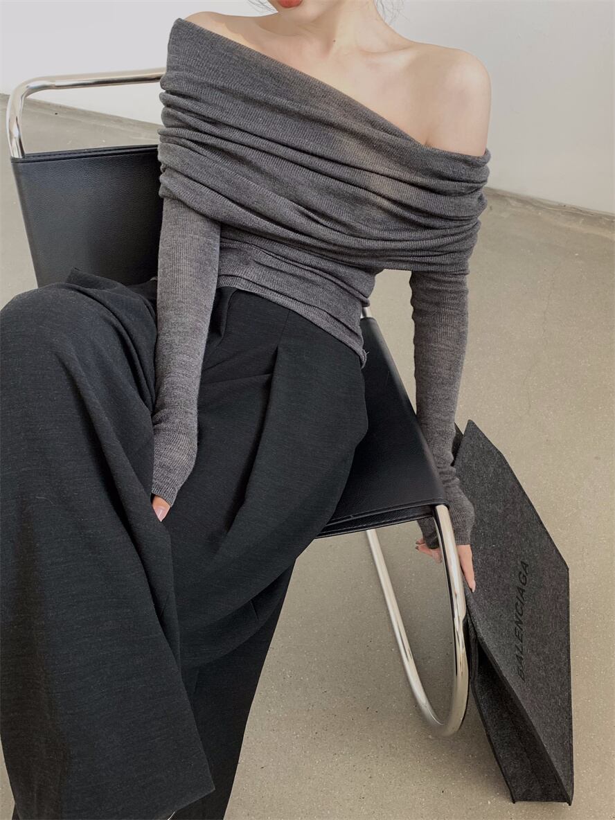 トップス レディース ニット セーター 長袖 オフショルダー オフショル スリム タイト 細身 かわいい 大人可愛い きれいめ エレガント シック おしゃれ お洒落 綺麗 クール モード系 セクシー おとな こなれ感 ラフ ガーリー 個性的 モダン ロマンチック 抜け感 存在感 主役級 無地 OL デート お出かけ 女子会 休日 パーティー イベント 散歩 街歩き フリーサイズ ホワイト グレー 春 秋 20代 30代 40代 韓国 韓国系 着回し 普段使い ファッション コーデ スタイル モテ 送料無料