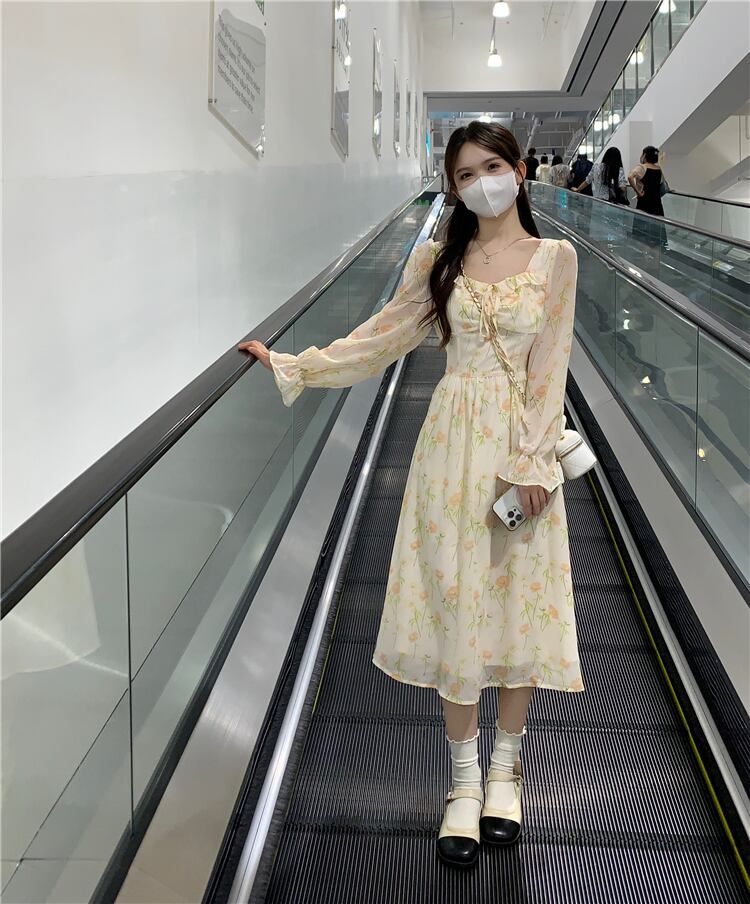 【着用レビュー】ワンピース レディース フレアワンピース 膝下 ミモレ丈 袖あり 長袖 ボリューム袖 パフスリーブ スクエアネック フレア 細身 裾フレア レース シフォン フリル リボン 透け感 ポリエステル かわいい 大人可愛い きれいめ 上品 清楚 おしゃれ お嬢様 おとな ナチュラル こなれ感 ラブリー キュート ガーリー 華やか 爽やか 花柄 小花柄 OL 通勤 学生 デート お出かけ 女子会 パーティー S M 春 夏 秋 記念日 食事会 二次会 10代 20代 韓国系 楽ちん 送料無料