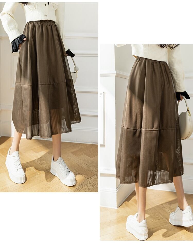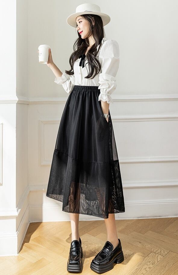 スカート レディース ロングスカート 2カラー S M L カーキ ブラック カラバリ ボトムス フレアスカート 無地 ロング Aライン ドレープ メッシュ チュール オーガンジー ウエストゴム シアー 透け感 ポケット ハイウエスト スタイルアップ 脚長効果 体型カバー シンプル きれいめ カジュアル フェミニン ガーリー 大人可愛い おしゃれ 普段使い デート お出かけ 女子会 休日 旅行 通勤 通学 ママ 着まわし ファッション コーデ モテ 春 秋 10代 20代 30代 40代 送料無料