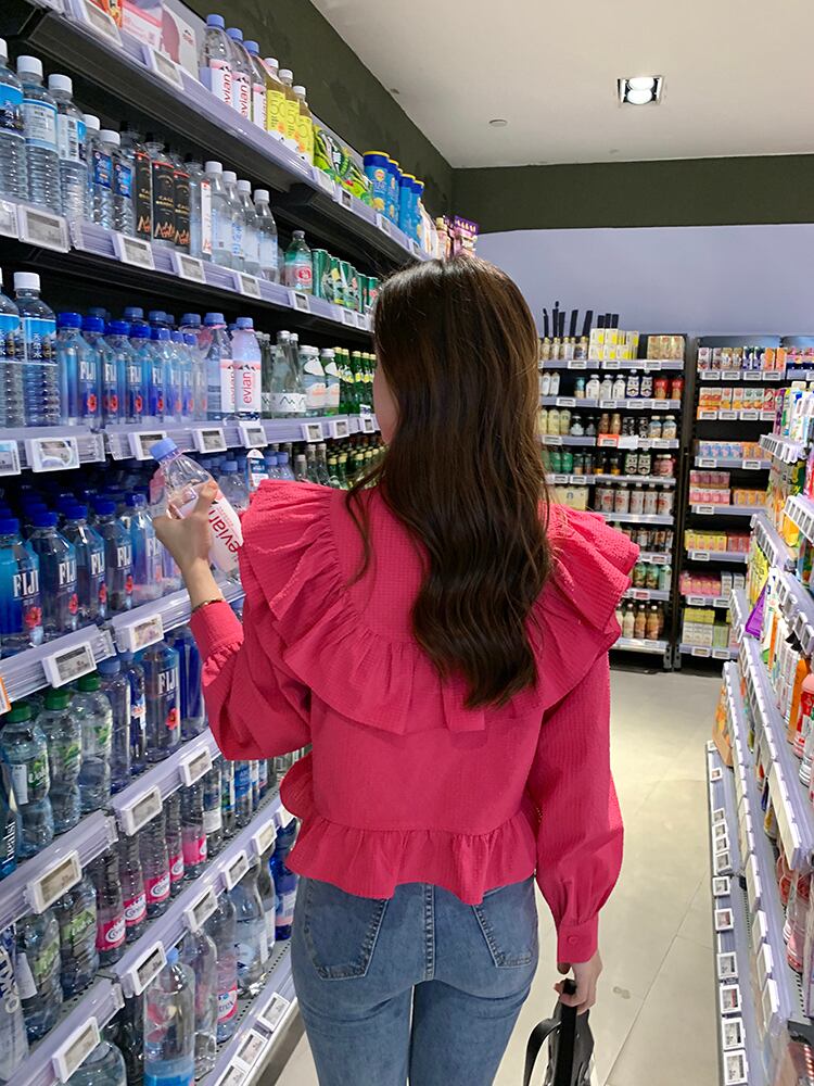 後ろ姿までしっかりかわいい、華やかなフリルデザインが目をひくブラウスです♡