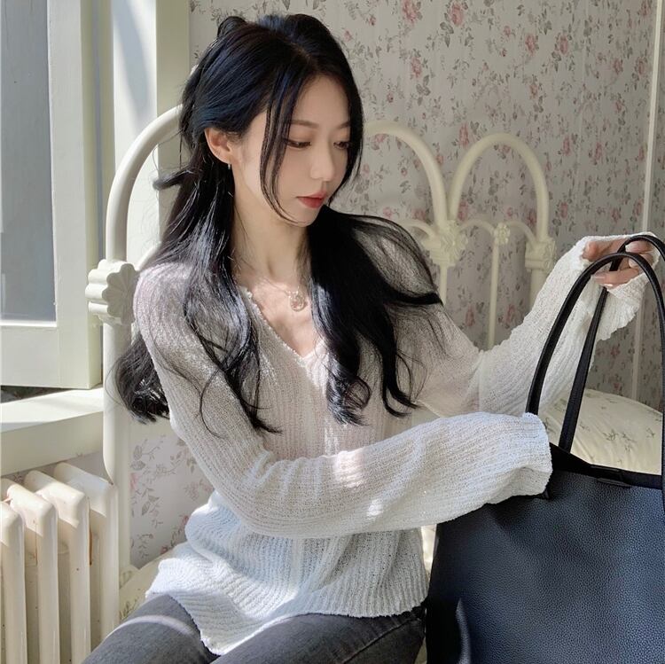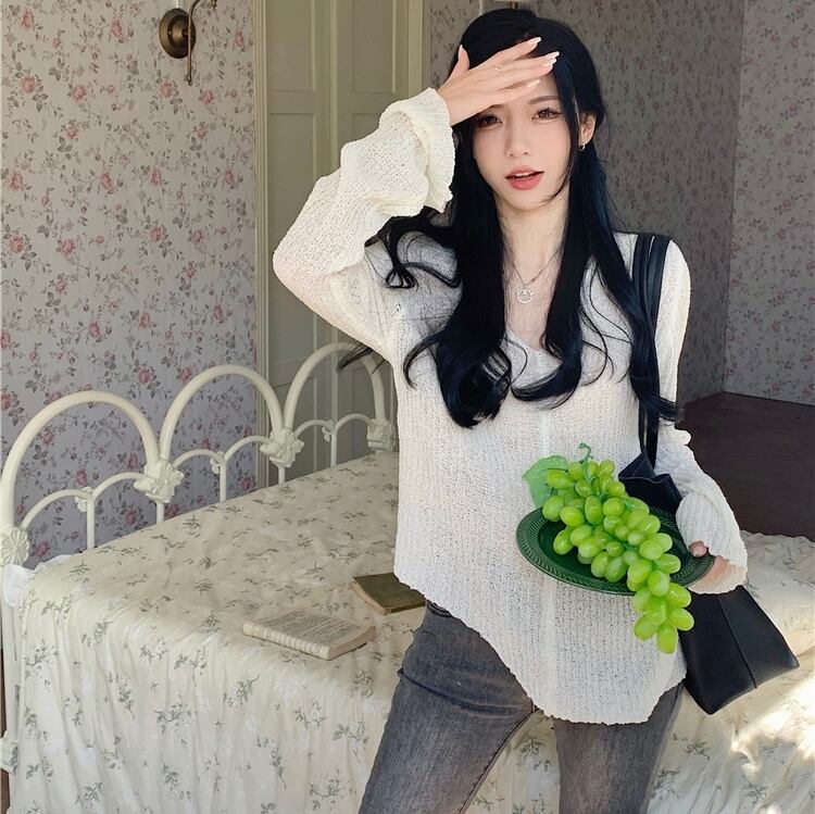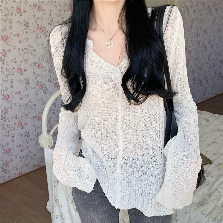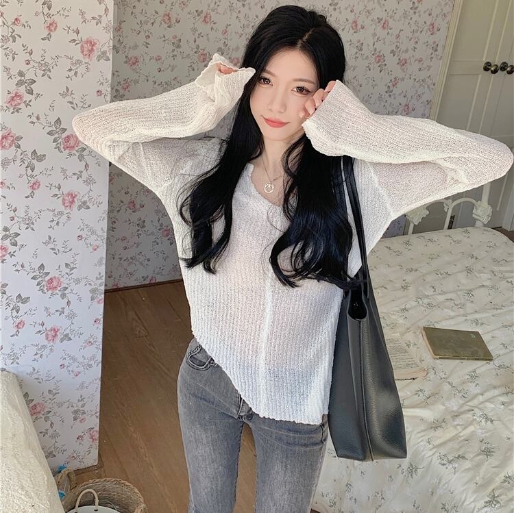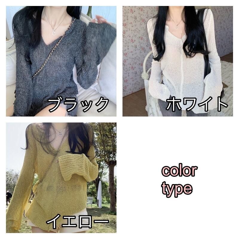 トップス レディース 長袖 長袖トップス ニット 透け感 軽やか Vネック かわいい 可愛い 大人かわいいシンプル カジュアル 大人 上品 お洒落 おしゃれ オシャレ 大人女子 ラフ ガーリー ラブリー キュート 抜け感 ナチュラル フリーサイズ ブラック ホワイト ブラック 10代 20代 30代 無地 送料無料 学生 大学生 通学 カフェ デート お出かけ ショッピング お買い物 休日 女子会 公園 ピクニック 旅行 ファッション コーデ スタイル モテ トレンド 流行 インスタ インスタ映え 韓国