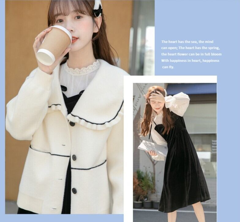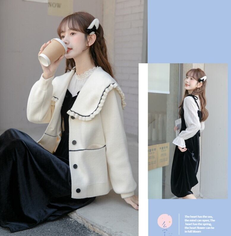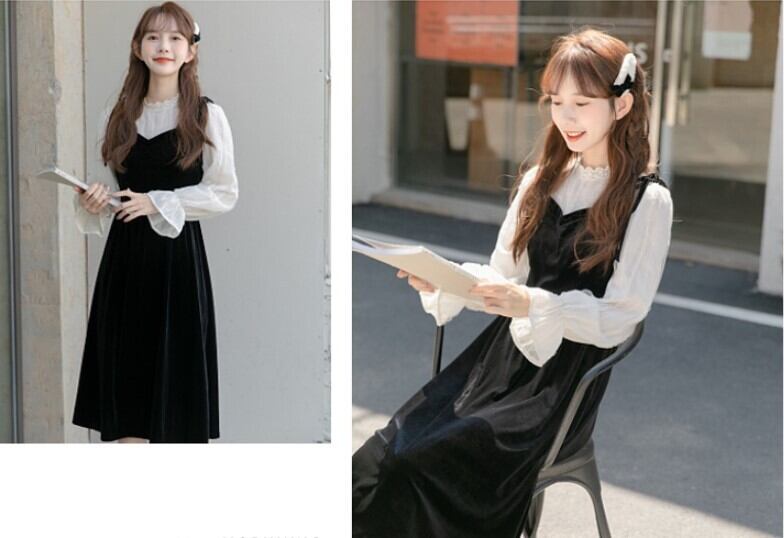 ガーリーなインナーと上品なベロア生地のワンピースの重ね着風アイテム♪