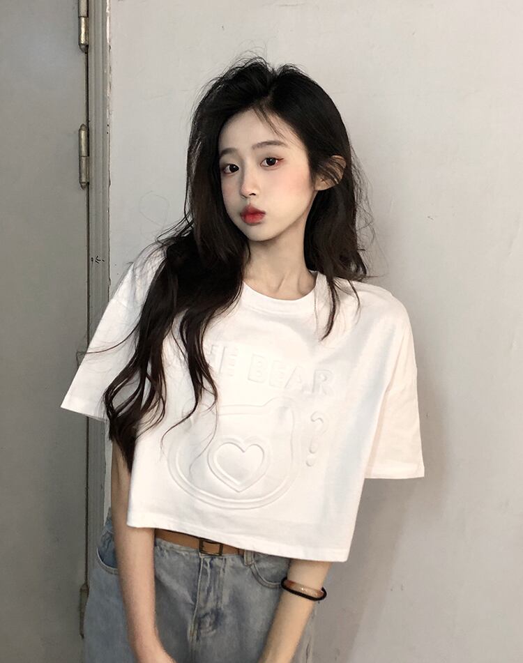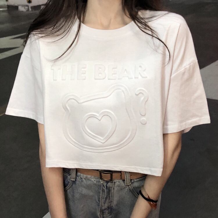 トップス レディース Tシャツ 2カラー フリーサイズ ホワイト ブラック カラバリ クルーネック 半袖 3Dプリント ショート丈 クロップド丈 プルオーバー ゆったり 大人可愛い シンプル カジュアル ストリート ナチュラル ラフ キュート ガーリー ルーズ 個性的 リラックス 抜け感 ユニーク 無地 アニマル プリント ハート 学生 通学 デート 休日 アウトドア 旅行 ライブ 大きめ ゆる 白 黒 10代 20代 30代 韓国 韓国系 着回し 普段使い 体型カバー 楽ちん コーデ 送料無料 デイリー